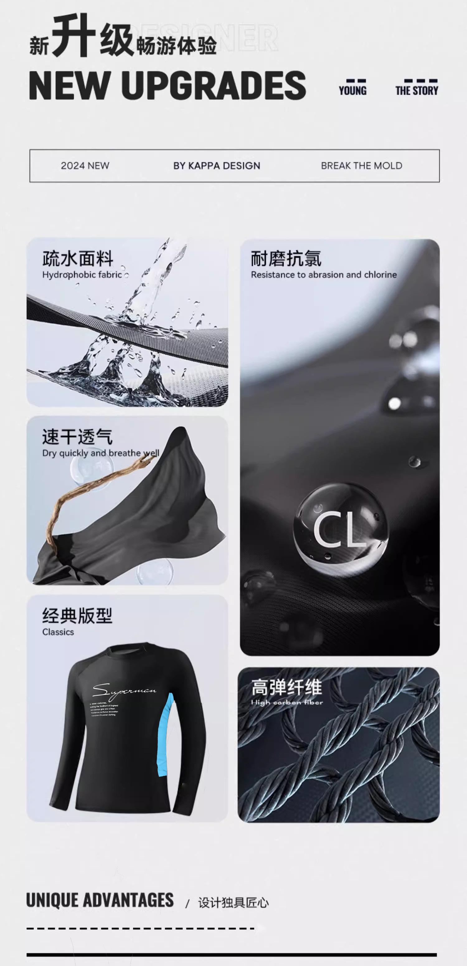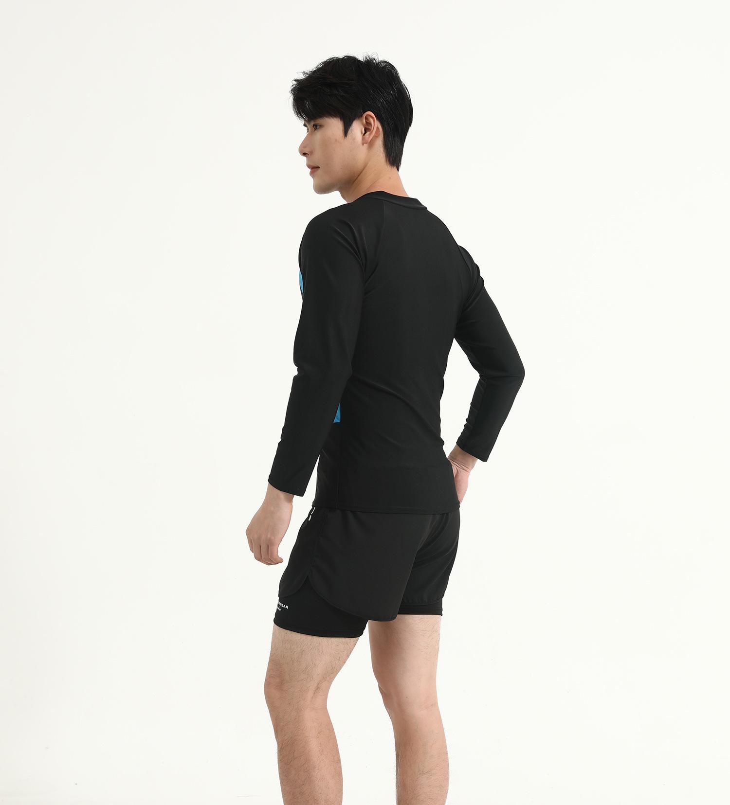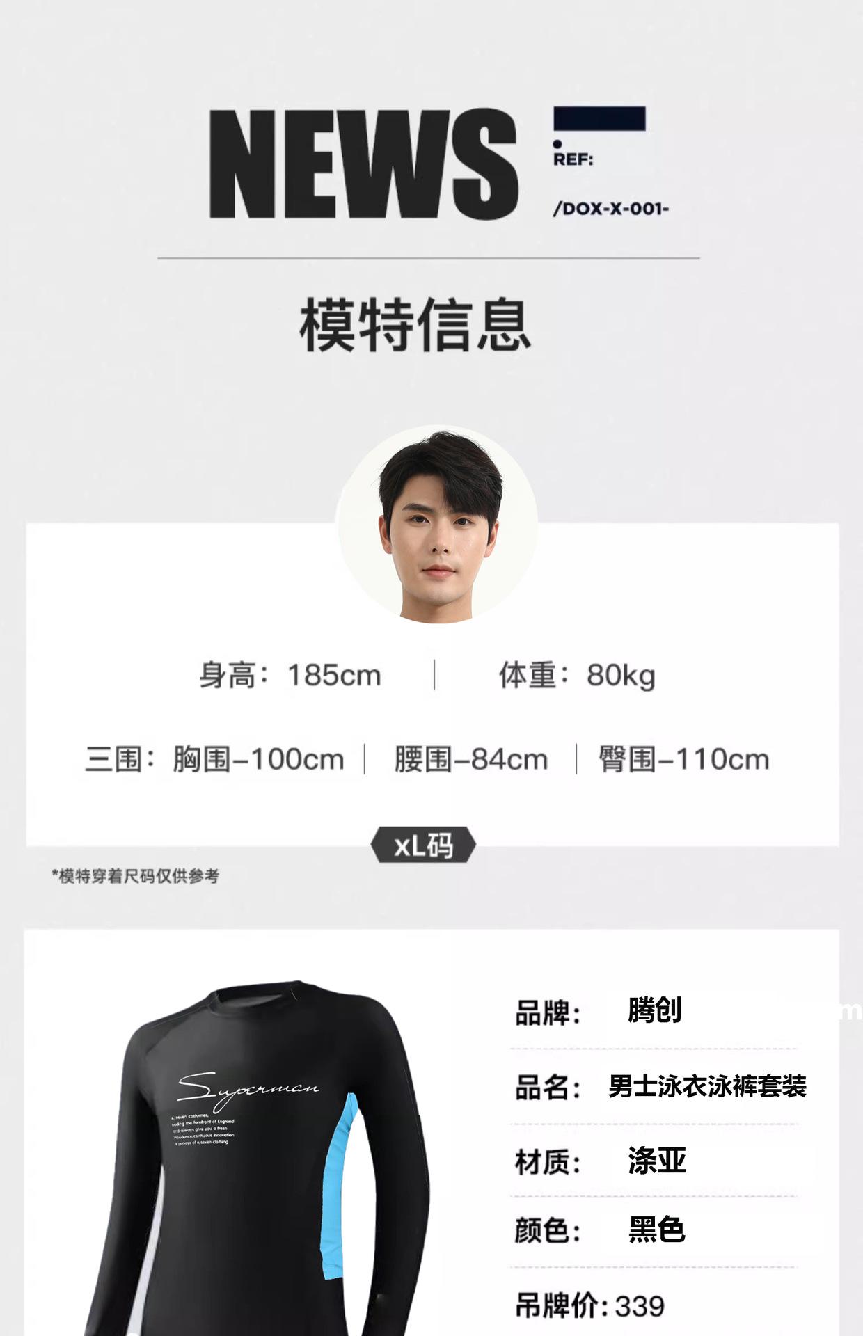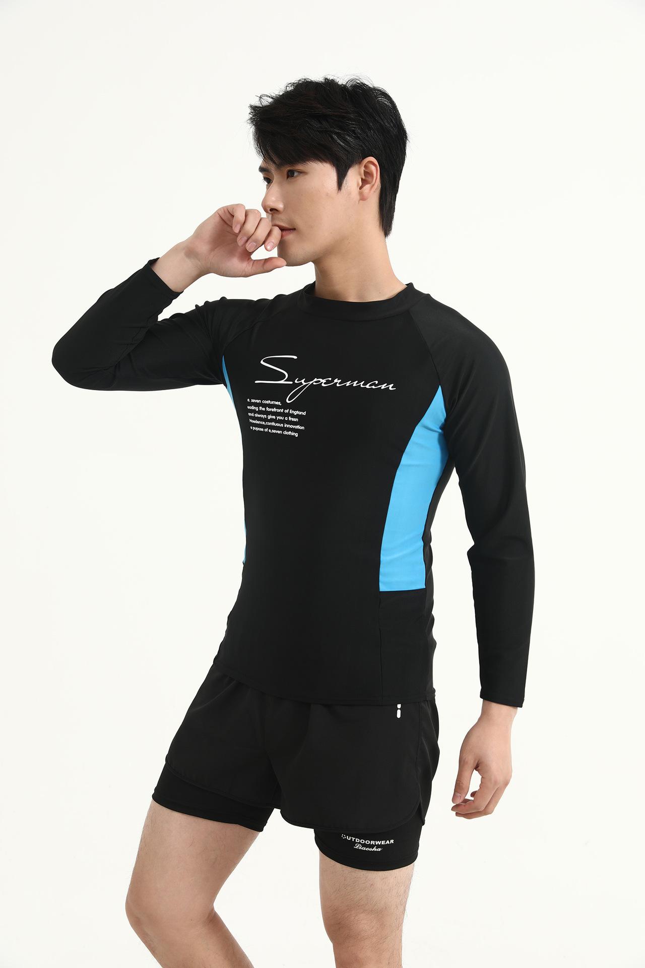 Traje de Baño para Hombre con Bloques de Color Traje Dividido de Manga Larga Protección Solar Talla Grande para Adulto Traje de Baño Pantalones Cortos de Doble Capa Antiembarazo