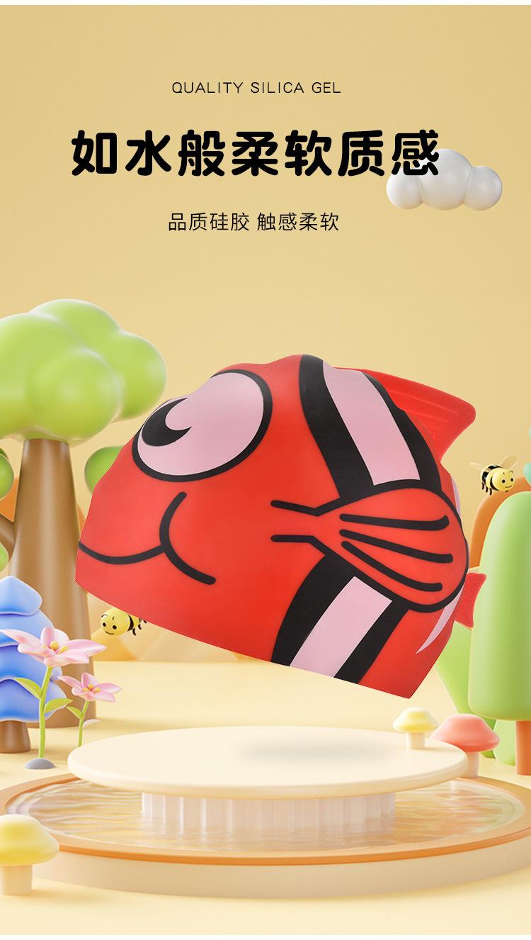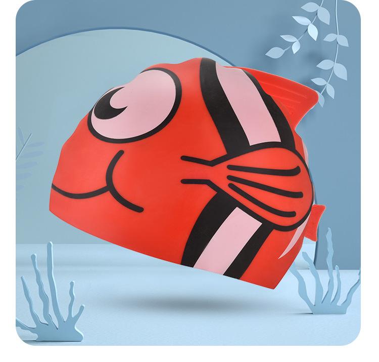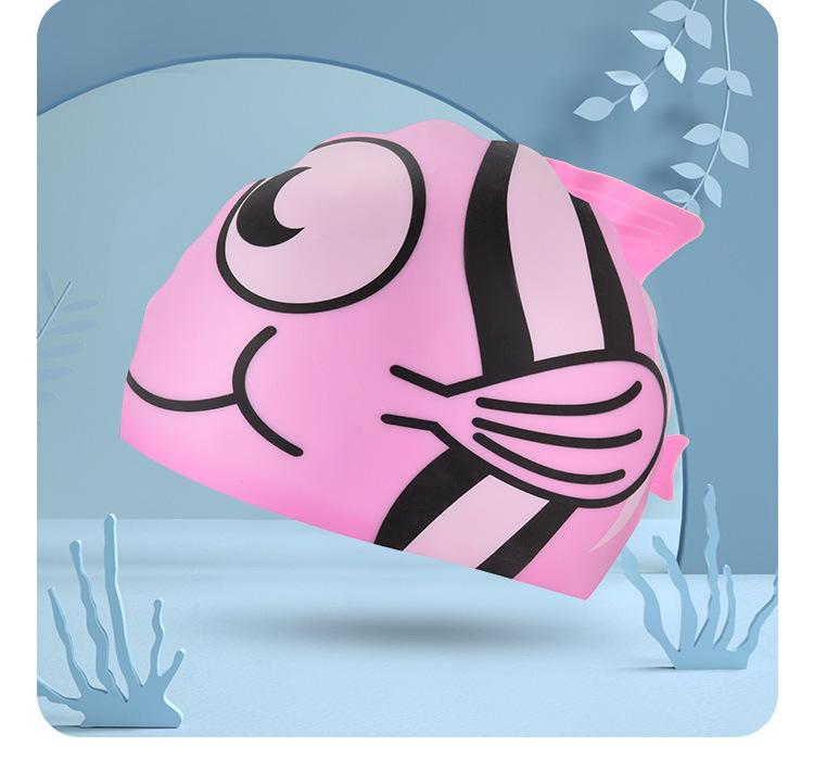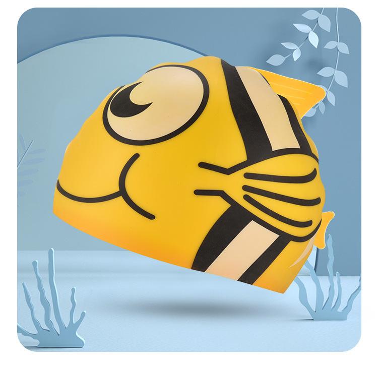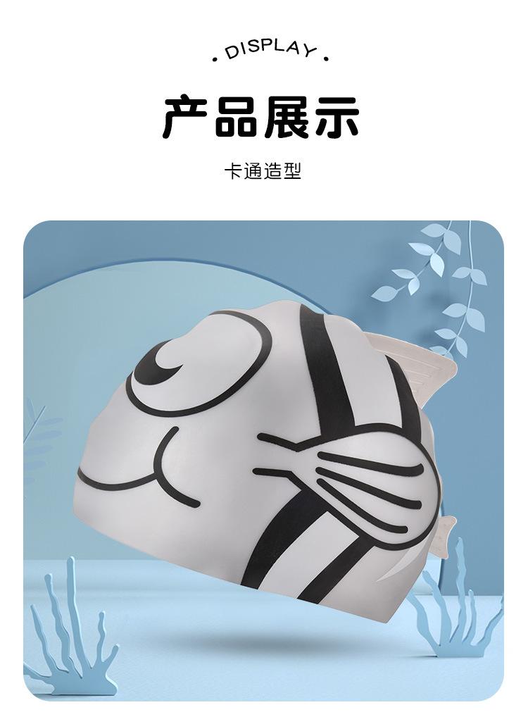 Gorro de natación para niños y niñas, bonito gorro de natación de silicona con dibujos animados, profesional, con protección para los oídos, impermeable, para cabello largo, muy elástico.