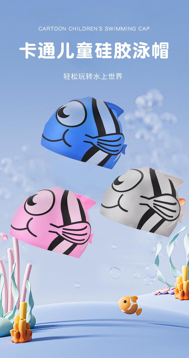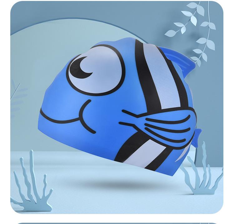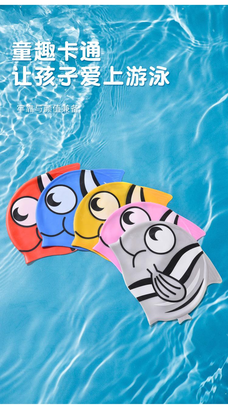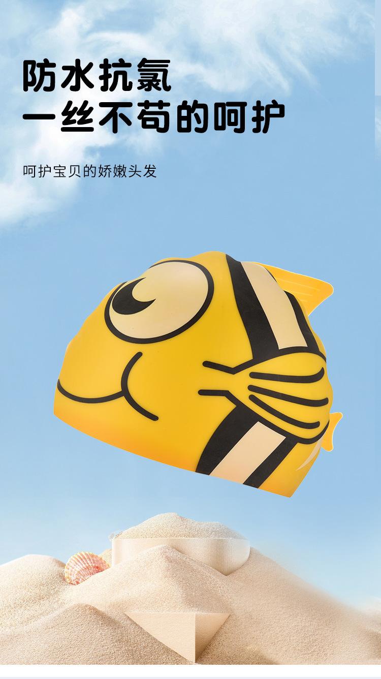 Gorro de natación para niños y niñas, bonito gorro de natación de silicona con dibujos animados, profesional, con protección para los oídos, impermeable, para cabello largo, muy elástico.