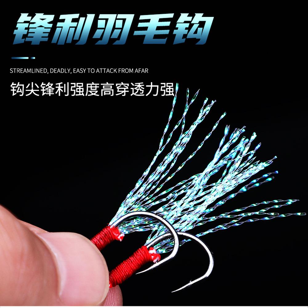 Modelo de anzuelo (anzuelos): anzuelo de plumas reforzado Aukin 4#/6#/8#, el anzuelo es afilado y fuerte, la superficie es antioxidante y se puede utilizar durante mucho tiempo.