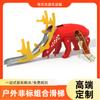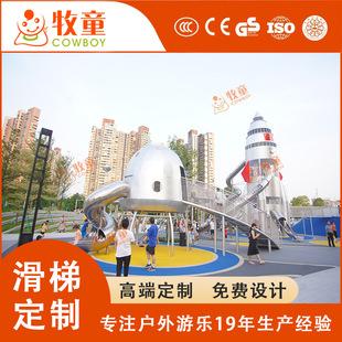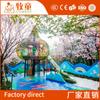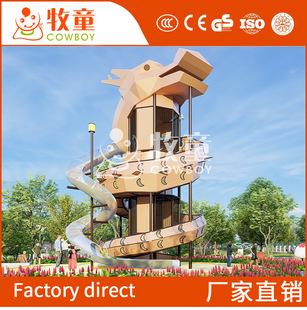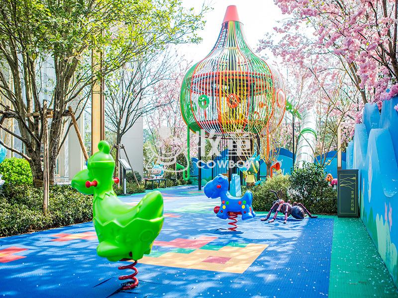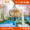 La parte superior del castillo está envuelta en un diseño de jaula de pájaros, creando una zona segura de desafío de altura para niños; las escaleras en la parte inferior del castillo conducen hacia la cima.