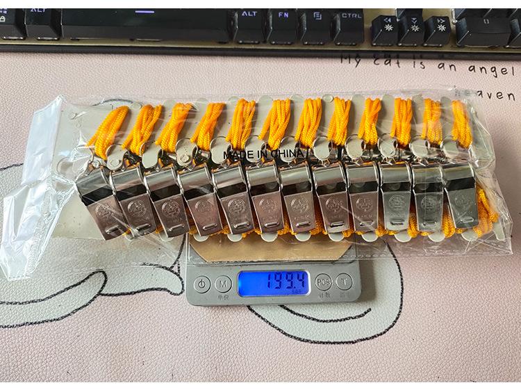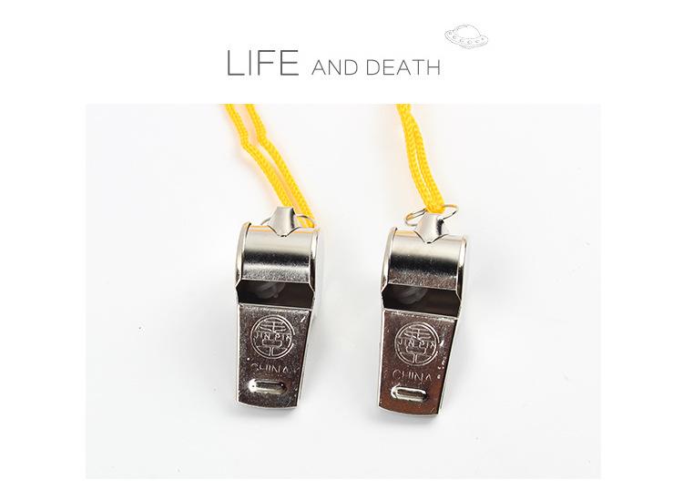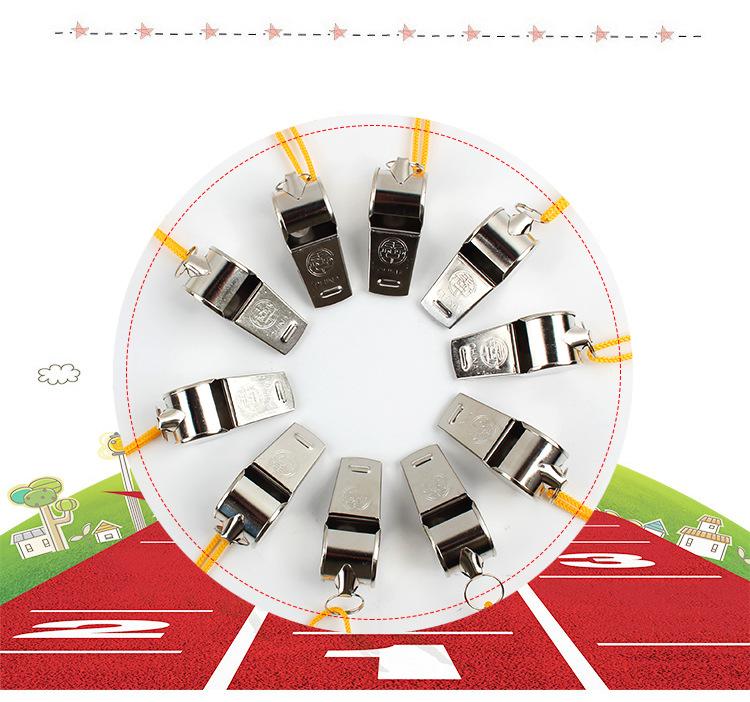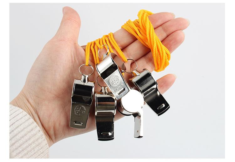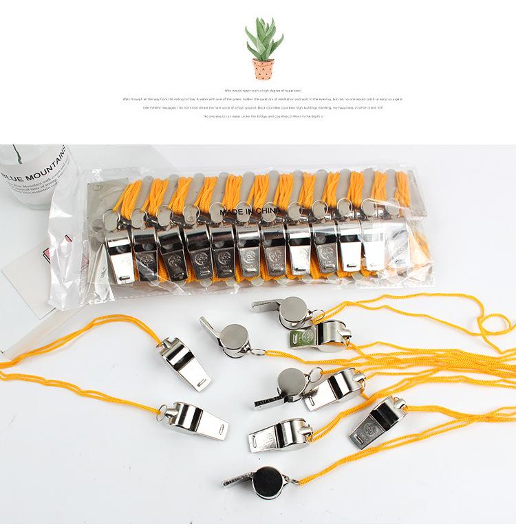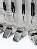 Silbato de metal con cordón para entrenador, árbitro, silbato para ayudar a la familia, juegos deportivos secundarios, silbato de acero inoxidable al por mayor
