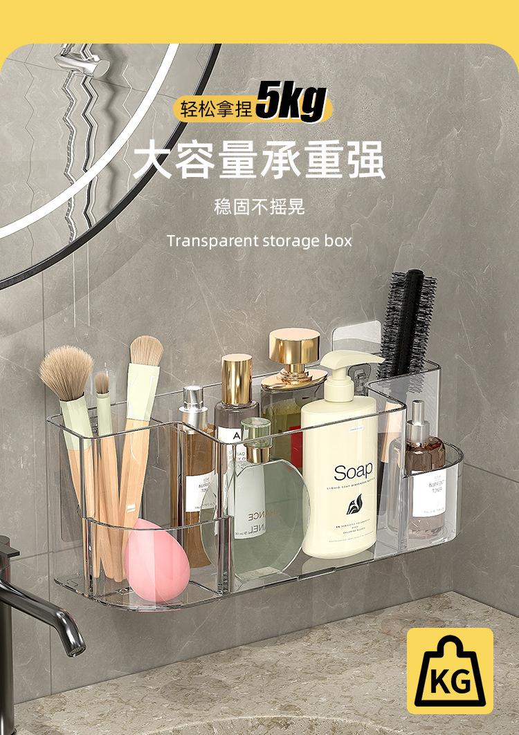 Estante de Almacenamiento para Baño Sin Perforaciones Montado en la Pared Organizador Caja de Almacenamiento de Pared para Lavabo de Baño