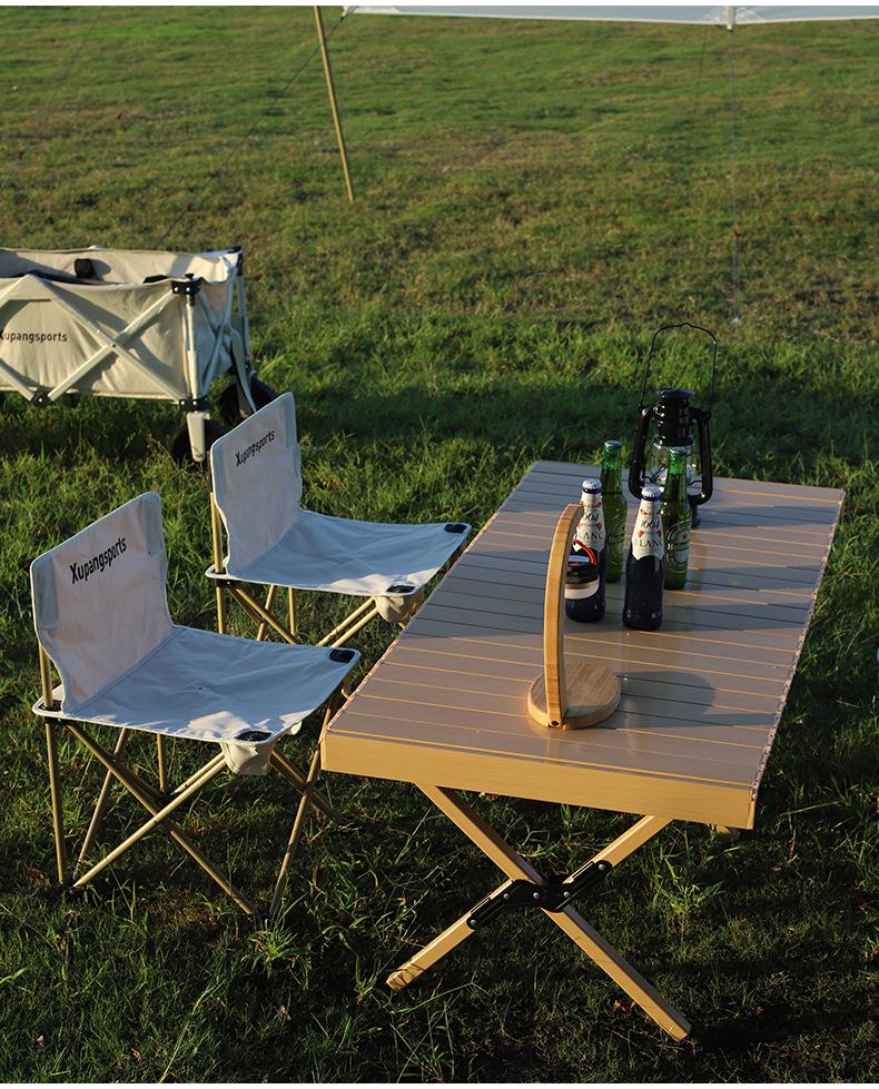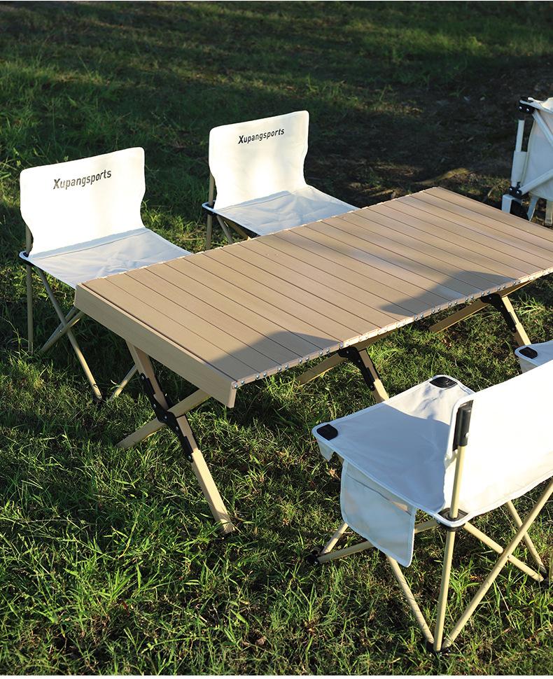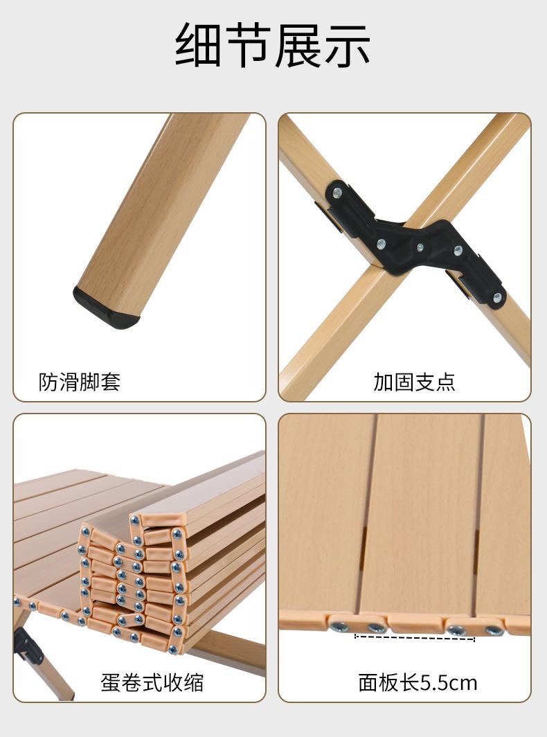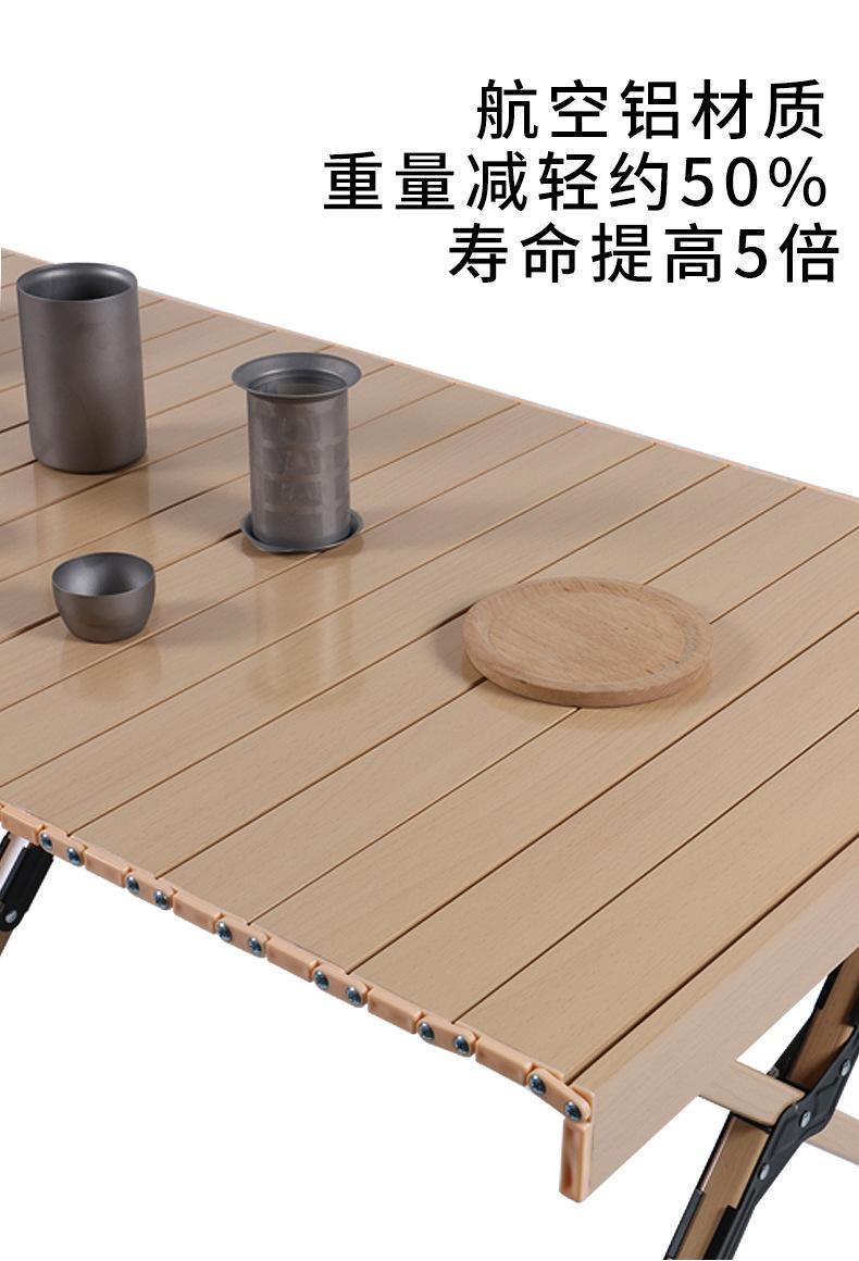 Mesa para rollos de huevo de aleación de aluminio, mesa plegable portátil y sillas, mesa plegable ultraligera, comedor, exterior, campamento, mesa y sillas con grano de madera