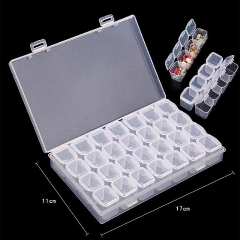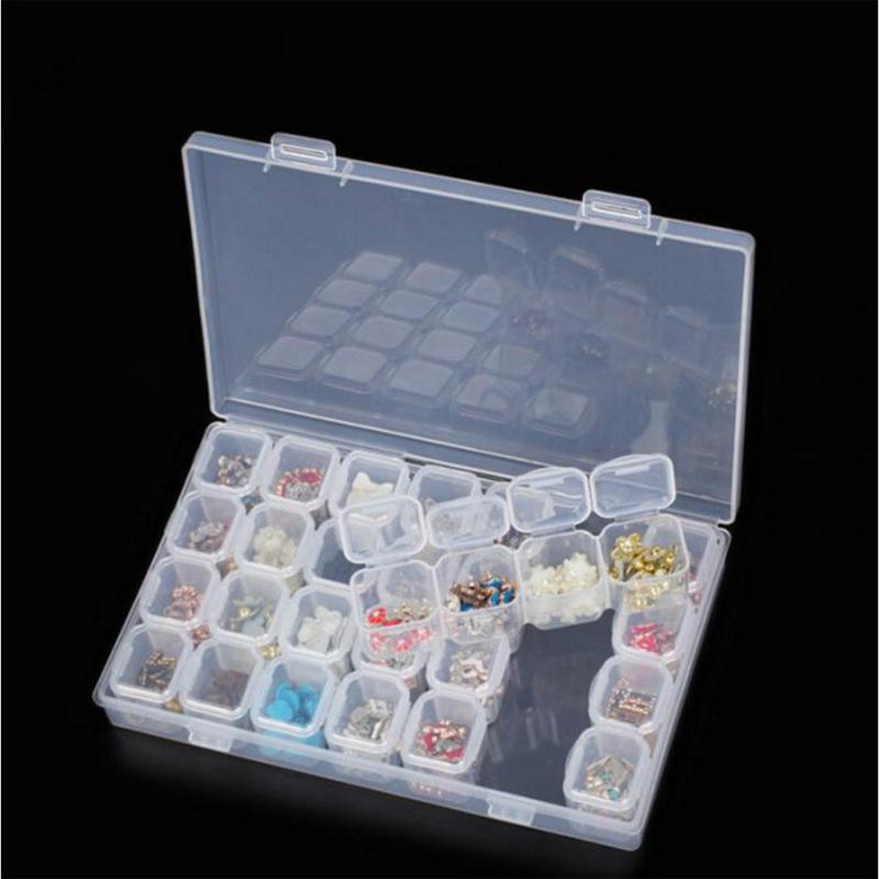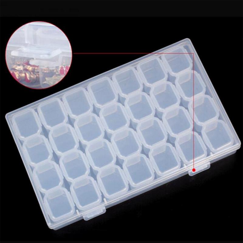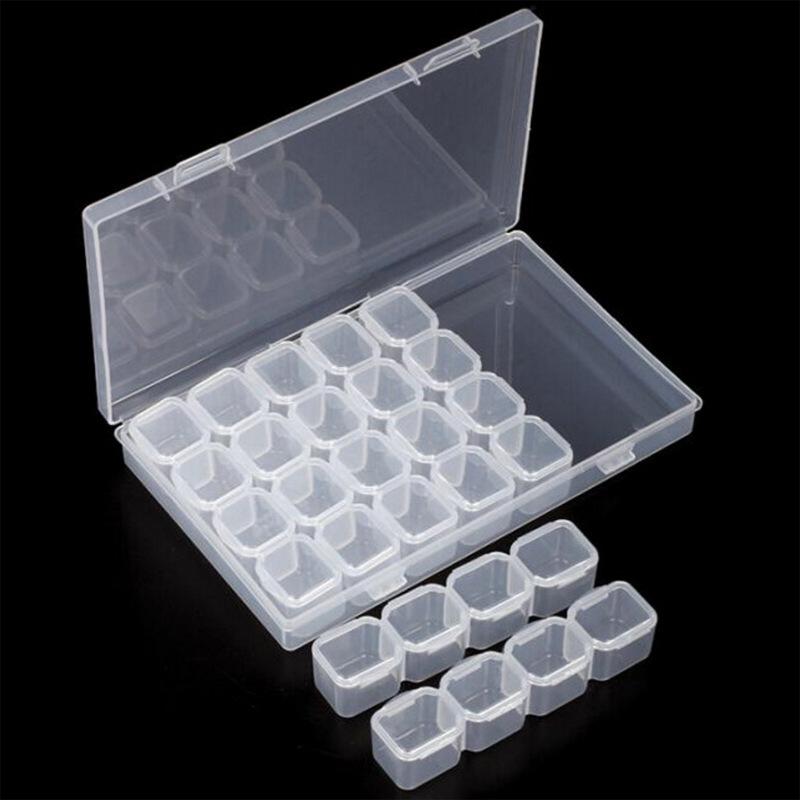 Joyero con 28 rejillas para taladro de uñas, caja de plástico vacía, caja de almacenamiento individual abierta, caja de pastillas transparente para almacenamiento