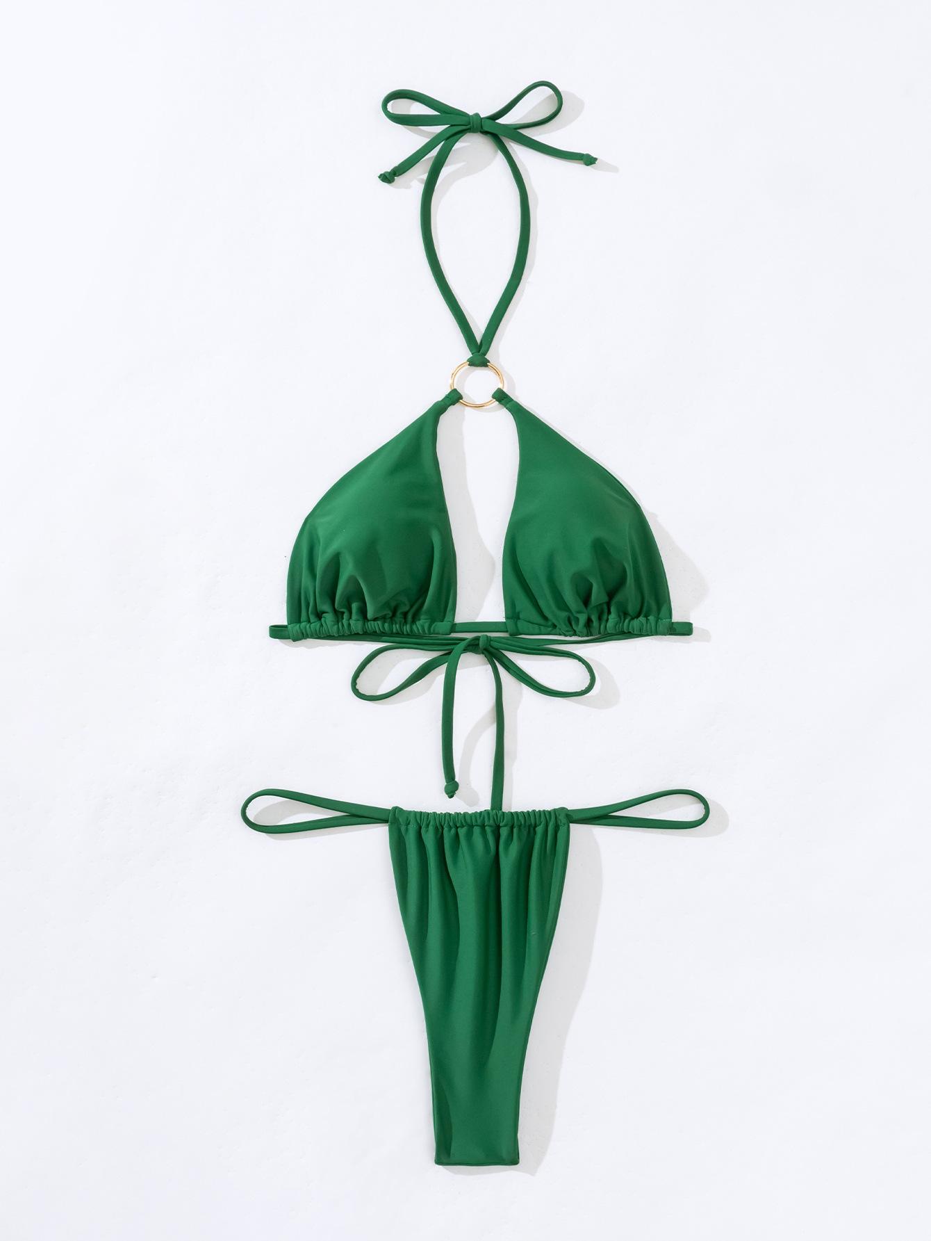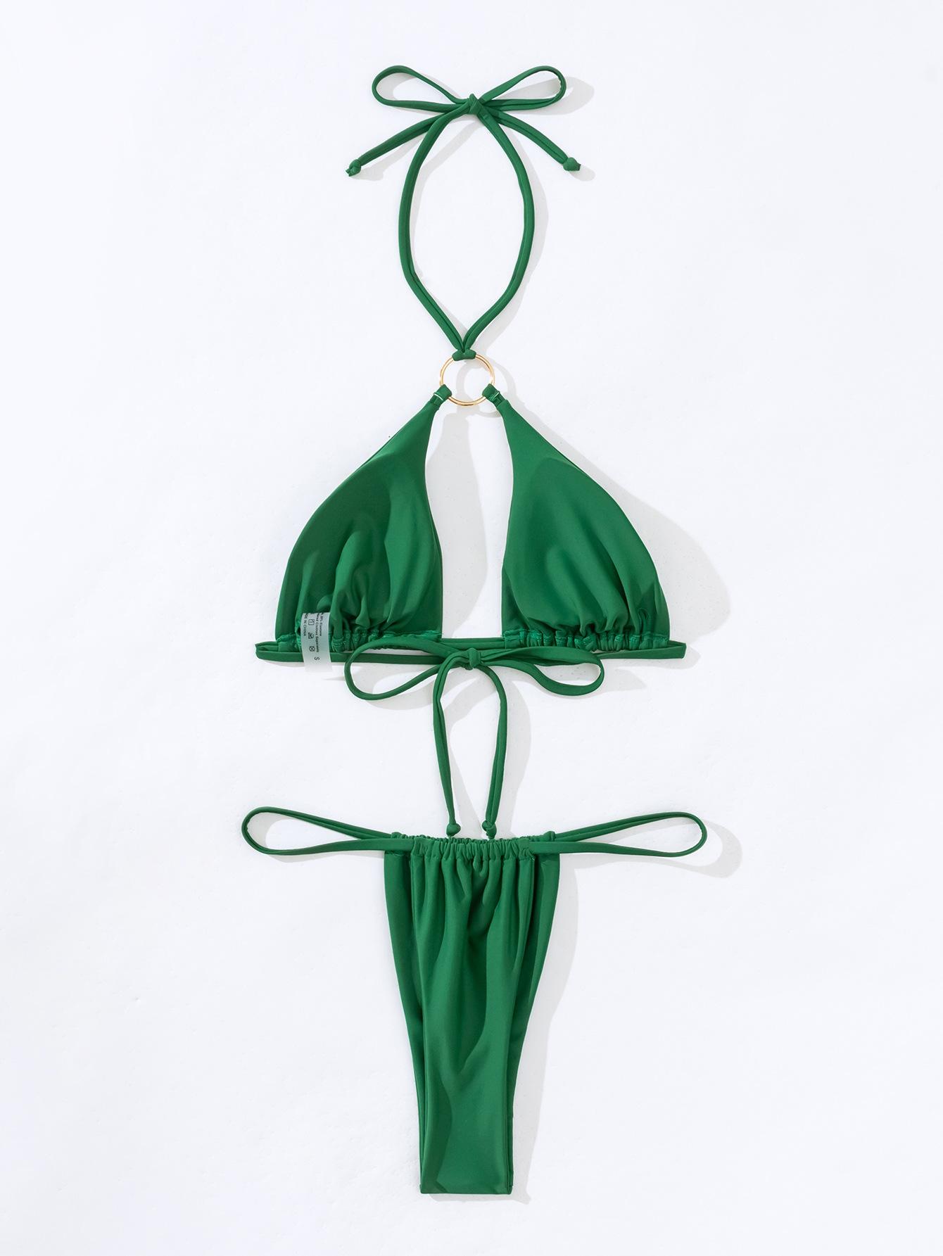 Traje de baño popular transfronterizo de tres puntos, bikini halter cruzado, sexy, de color sólido, dividido para mujer, al por mayor