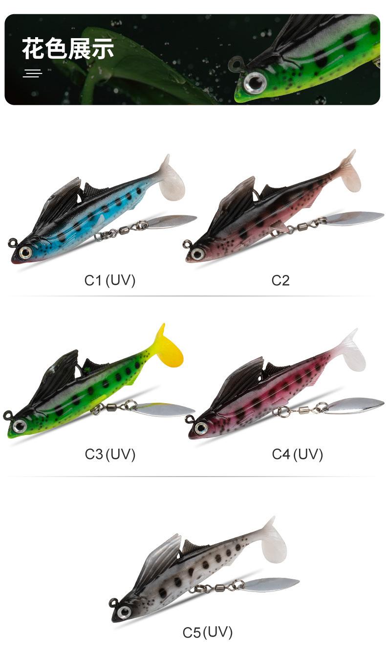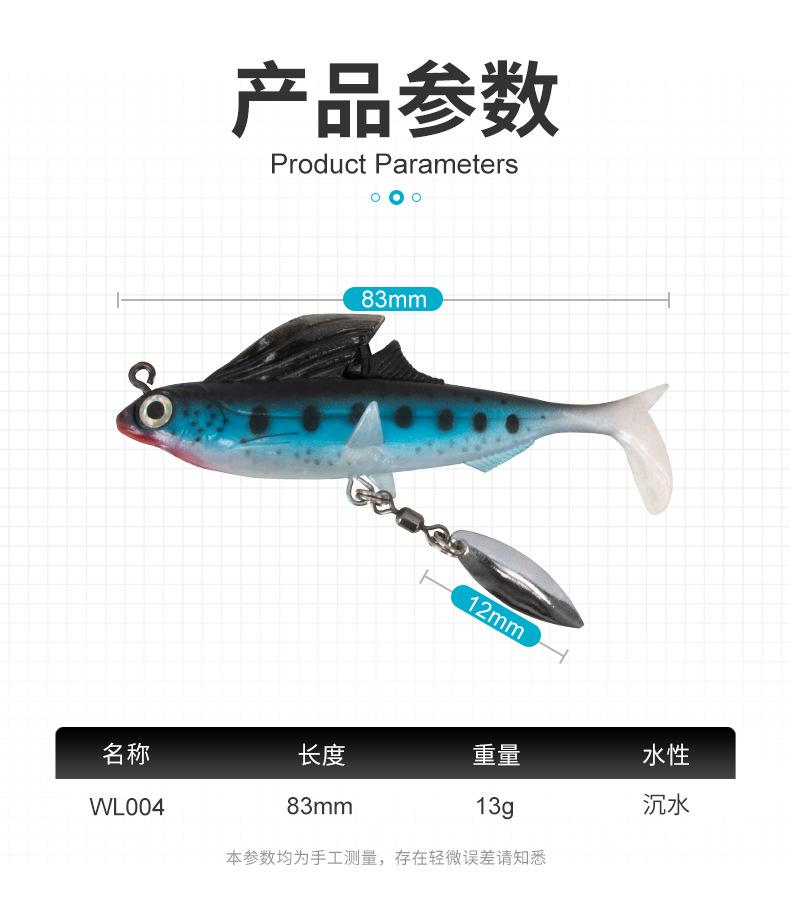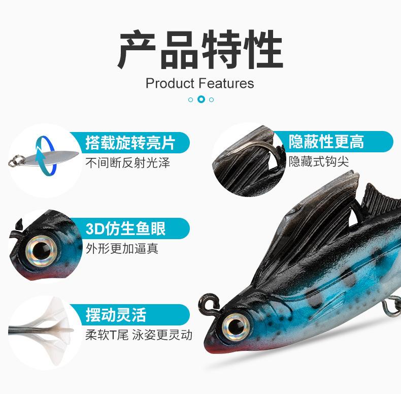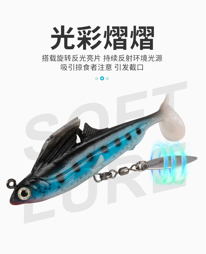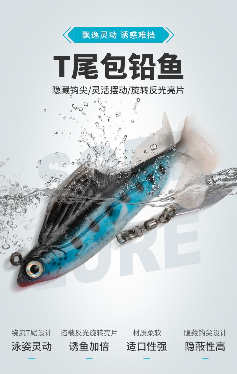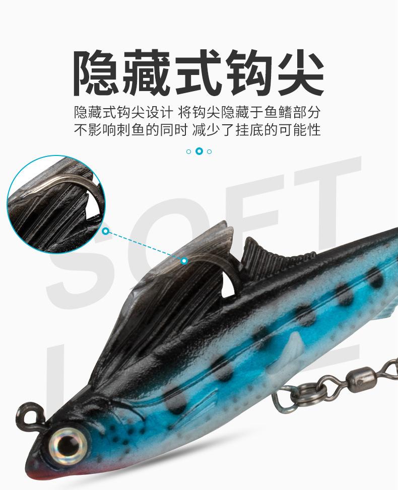 Cebo blando recubierto de plomo para pesca, con lentejuelas en la parte posterior, anzuelo simple de espina, cola en T, cebo Luya de 8,3 cm/13 G, cebo artificial biónico para tiburones jóvenes, cebo falso para pesca en el mar.