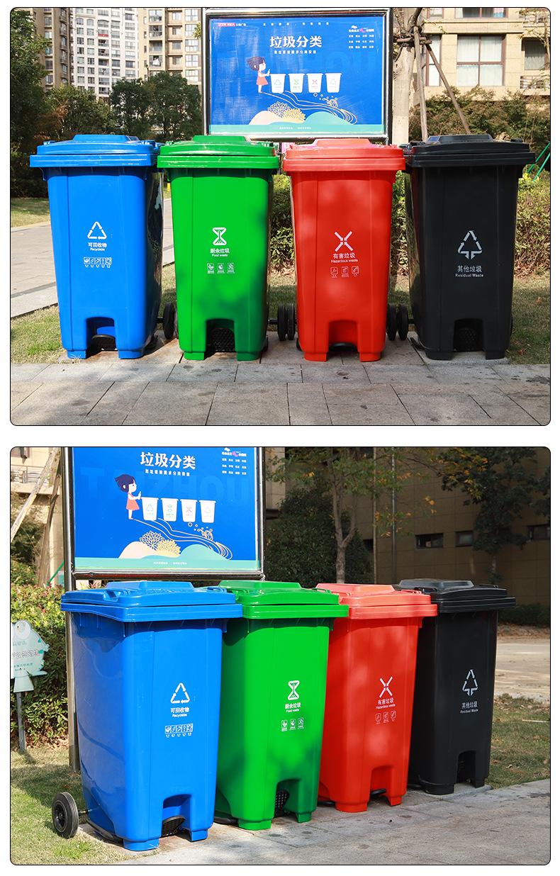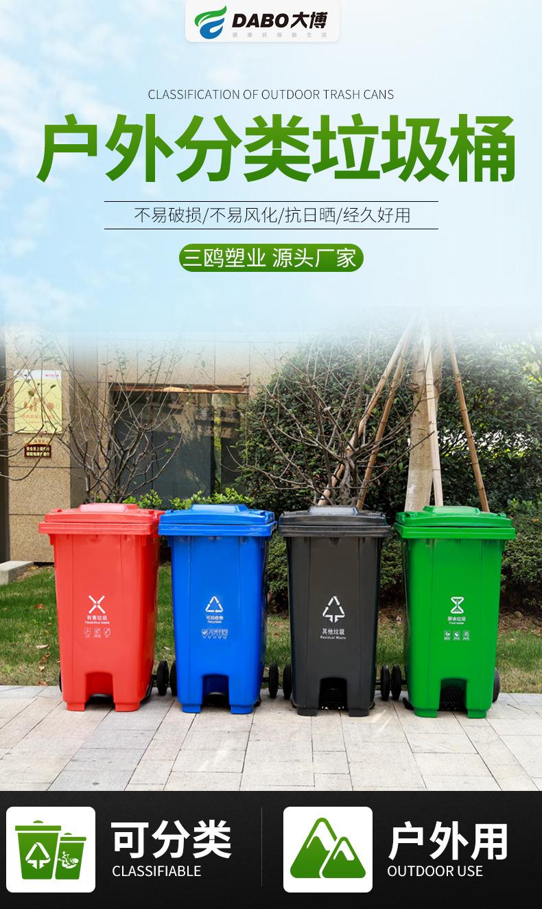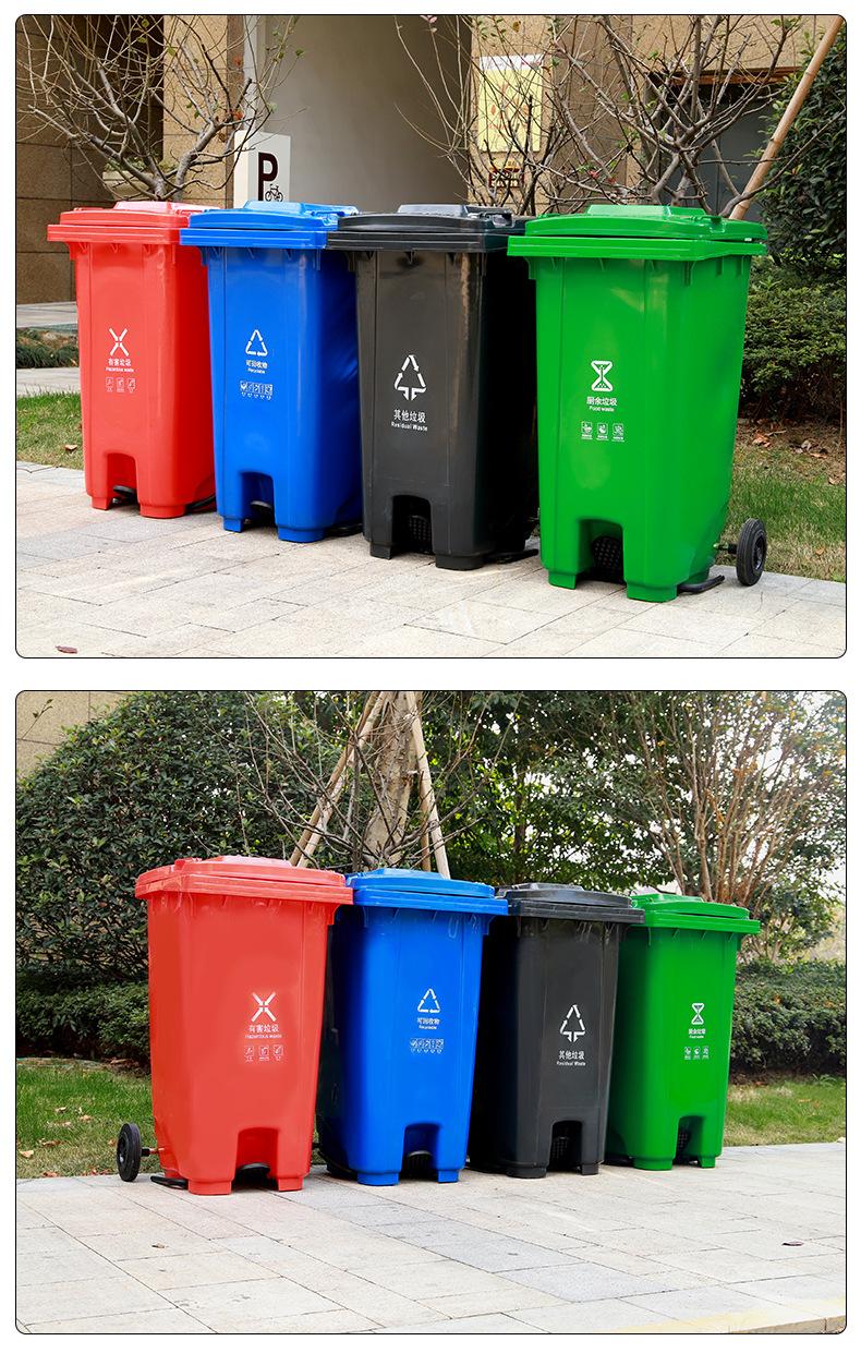 Contenedor de basura para exteriores, con remolque multiespecificación, para saneamiento, con tapa y ruedas, con pedal engrosado y clasificación.