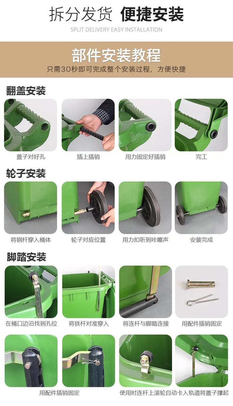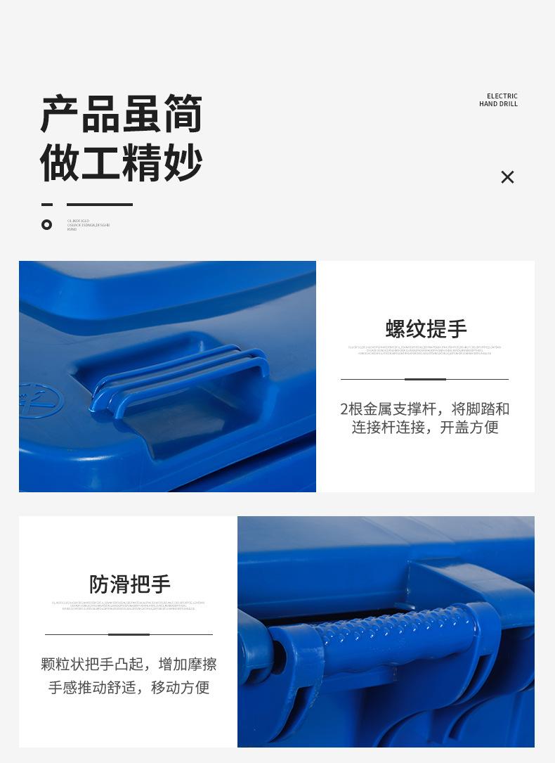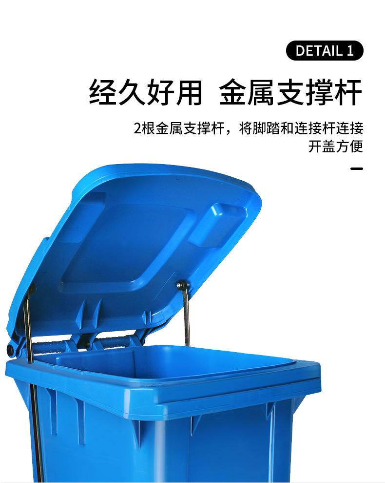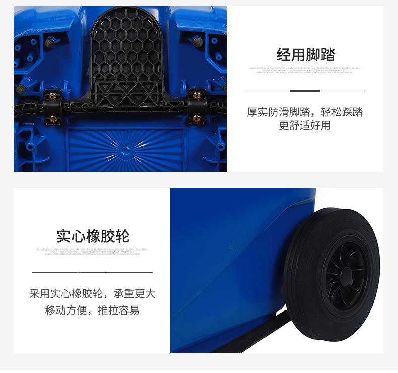 Contenedor de basura para exteriores, con remolque multiespecificación, para saneamiento, con tapa y ruedas, con pedal engrosado y clasificación.