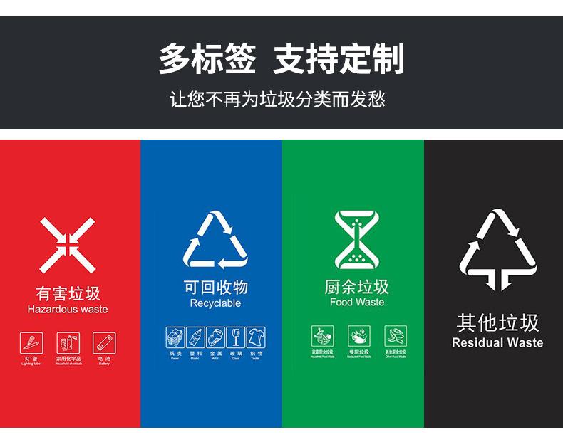 Red, Blue, Green, Gray, Red-harmful garbage, Blue-recyclable, Green-kitchen waste, Gray-other garbage