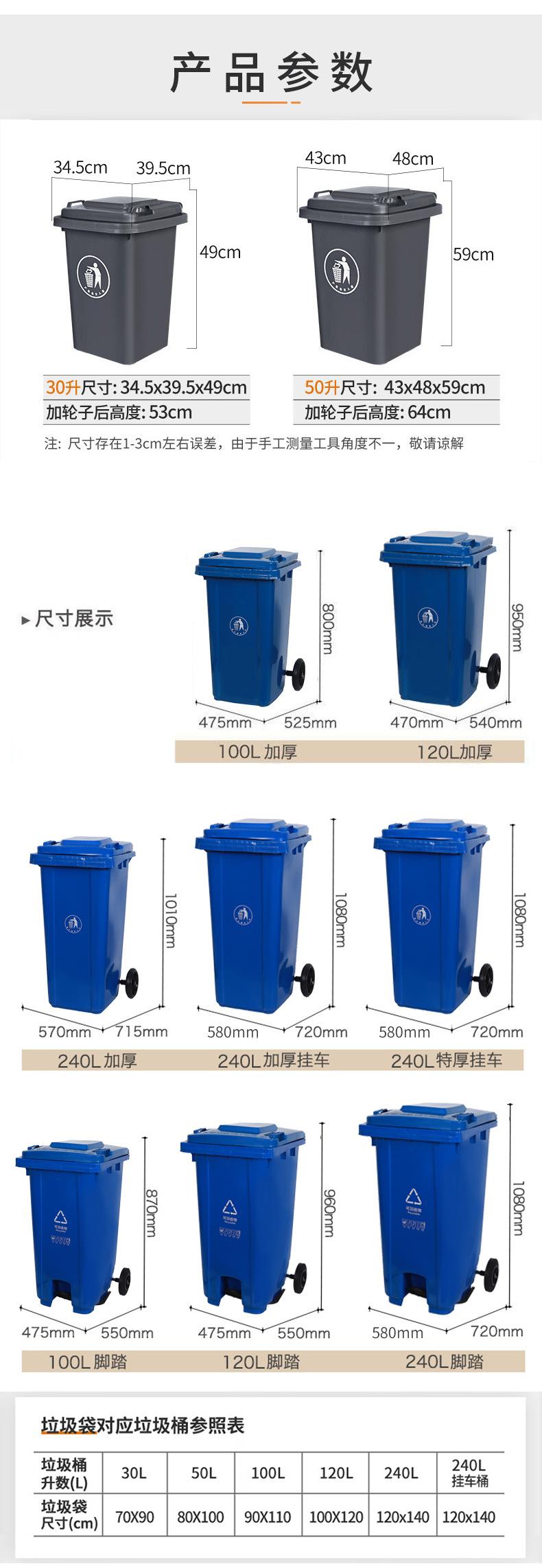 30L no wheel, 50L no wheel, 100L trailer with wheel and cover, 120L trailer with wheels and cover, 240L traile...