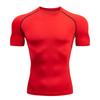 Camiseta deportiva de manga corta para hombre, ajustada, con cuello redondo, para baloncesto, fútbol, de compresión, de secado rápido, blanca y roja