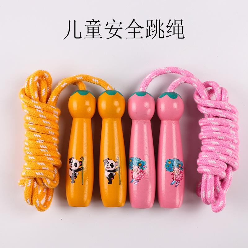 Compra Juguete de saltar la cuerda de madera para niños, estudiantes de primaria, deportes, jardín de infantes, principiantes, niño y niña, cuerda de saltar con mango de madera, cuerda de algodón al por mayor en Joom.pro