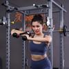Una breve introducción a las funciones del nuevo pórtico de sentadillas libres tipo bastidor:Equipo multifuncional que incluye sentadillas libres, pec fly, press de banca inclinado, press de banca plano, dominadas, dominadas, remo sentado, peso muerto, press de barril, levantamiento de pesas con barra, etc.
