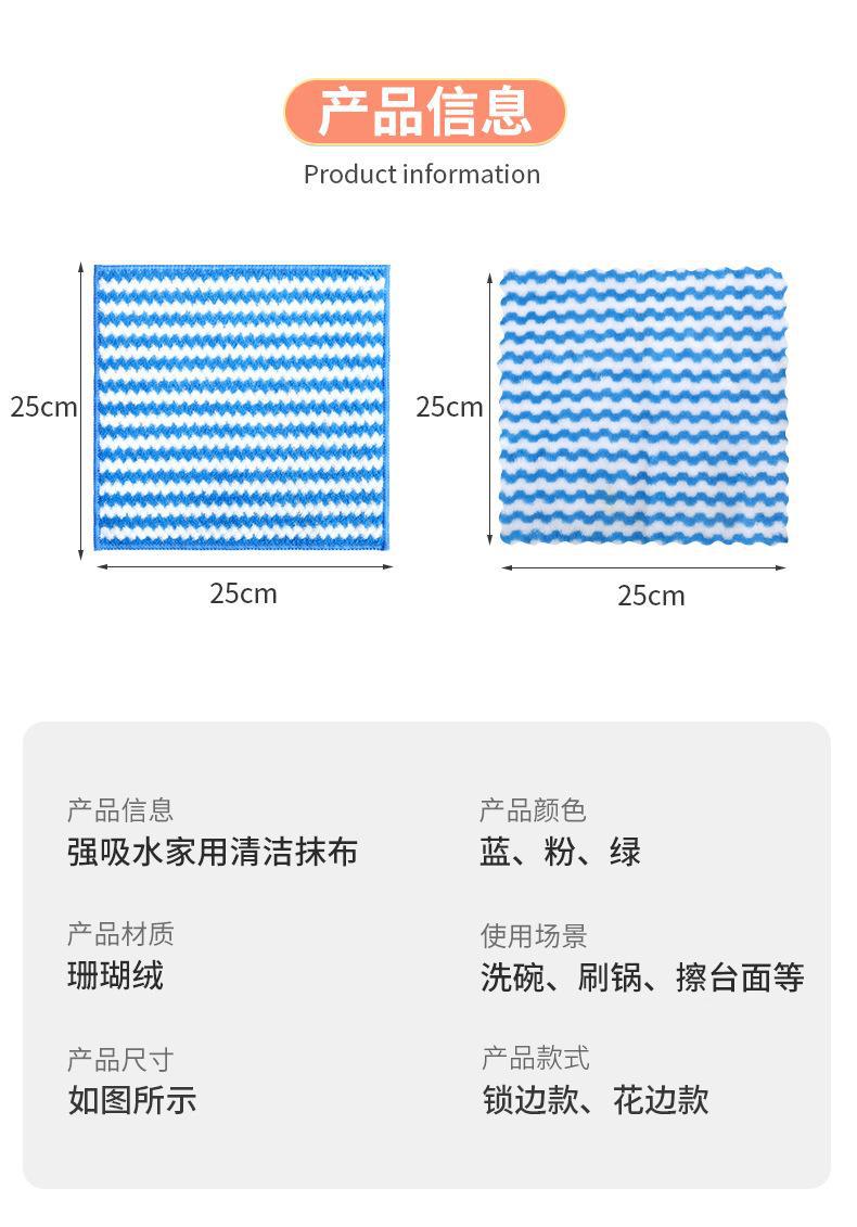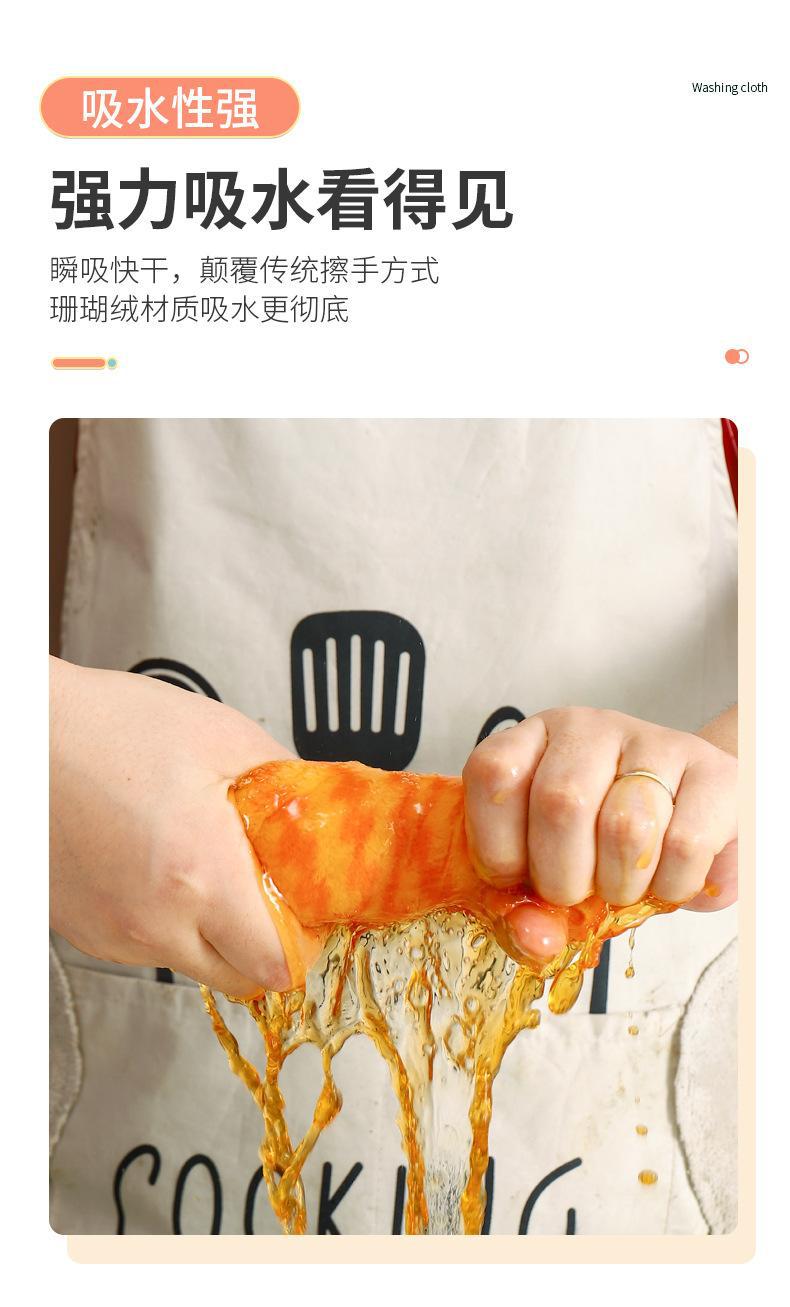 Paño catiónico de vellón de coral, venta al por mayor, absorbente, sin aceite, sin pelusa, para lavar platos, paño de limpieza de cocina, estropajo