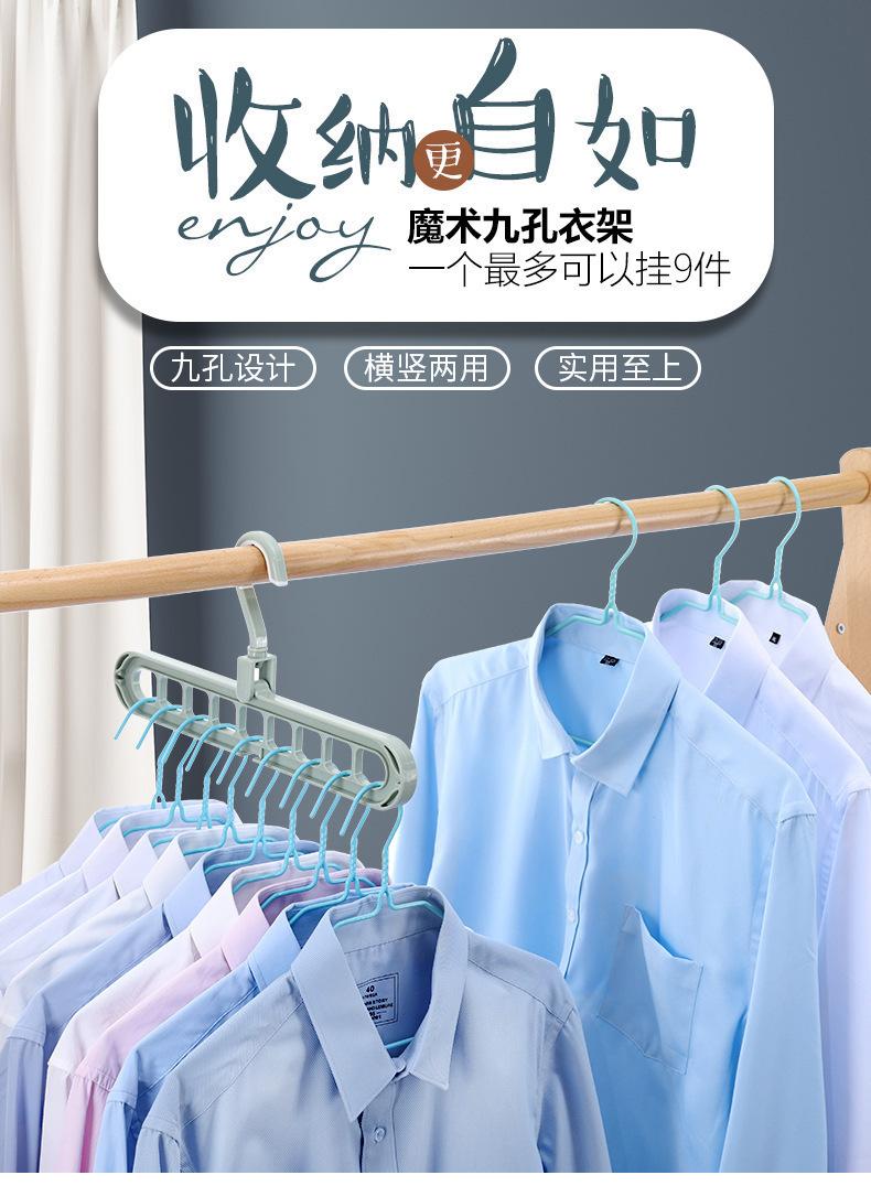 Percha de Nueve Agujeros, Giratoria y Plegable, Mágica para el Hogar Multifuncional de Plástico para Almacenamiento y Secado de Armario