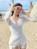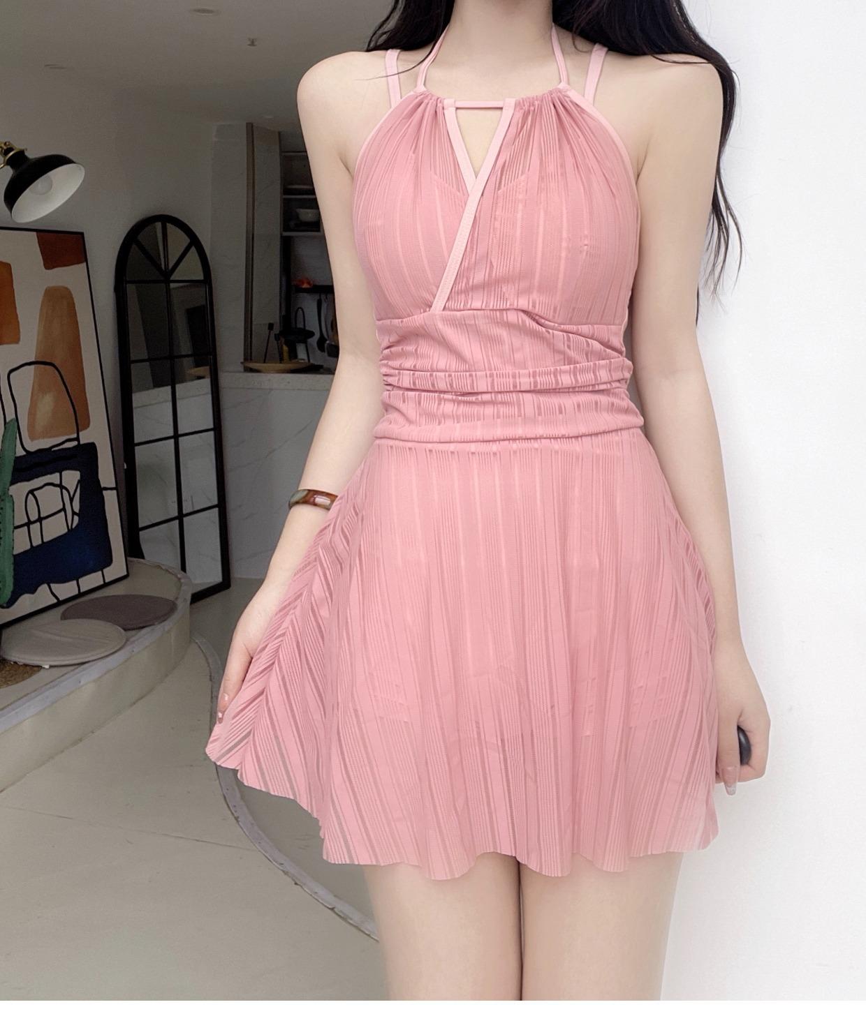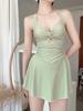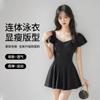 Traje de Baño Nuevo para Mujer 2025 Estilo Falda de Una Pieza Aspecto Adelgazante Cubre Vientre Estilo Coreano Conservador Push-Up para Busto Pequeño Traje de Baño para Aguas Termales