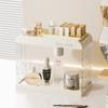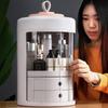 | Caja de almacenamiento de cosméticos giratoria transparente, estante de escritorio multifuncional para tocador, caja de almacenamiento para productos para el cuidado de la piel |