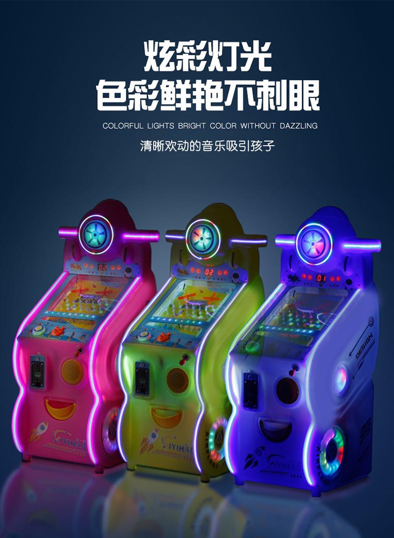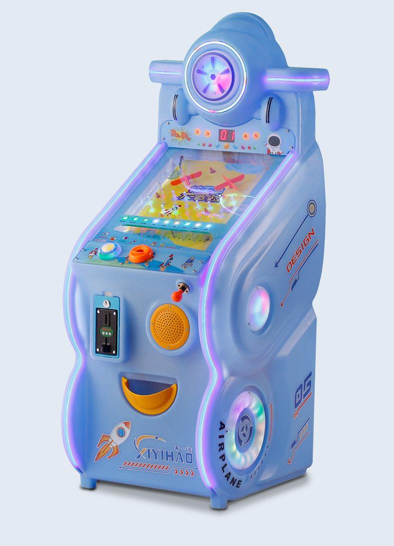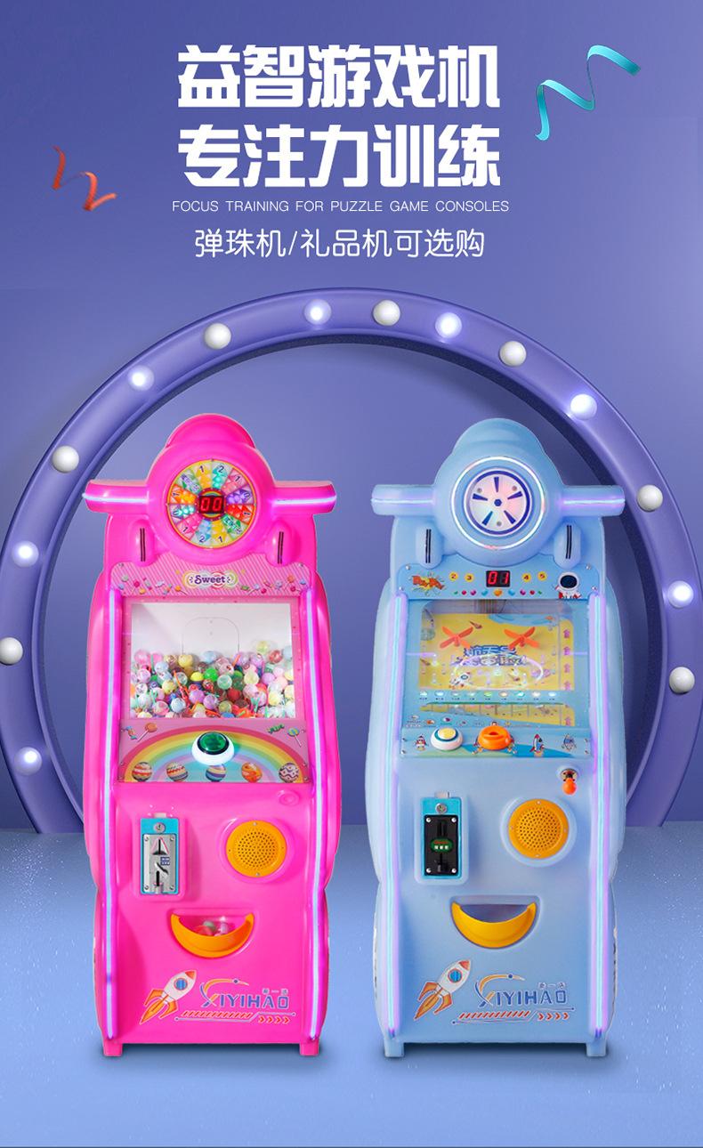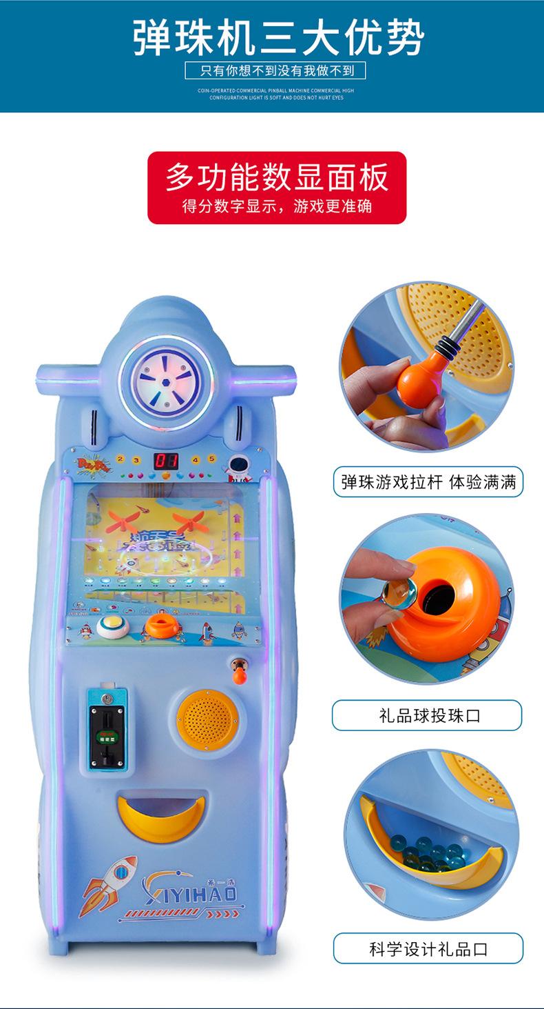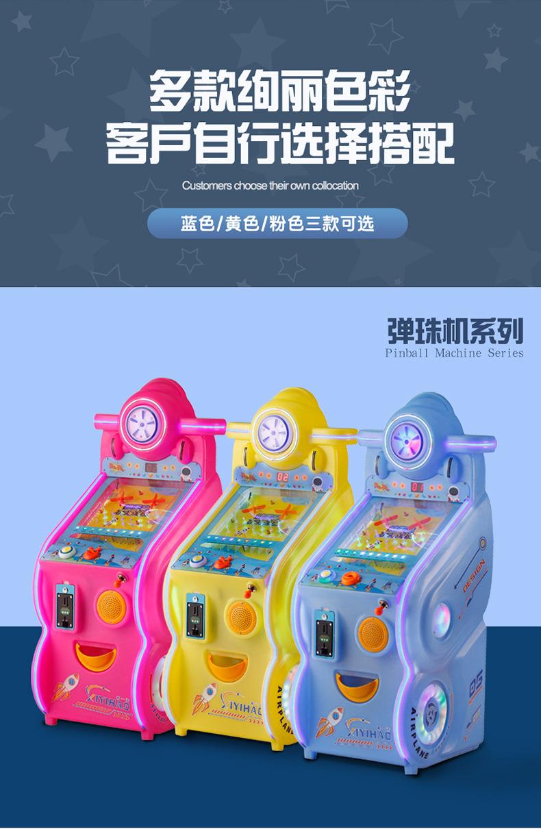 Blue pinball machine, Red pinball machine, Yellow pinball machine, Yellow egg twisting machine, Red elastic ball