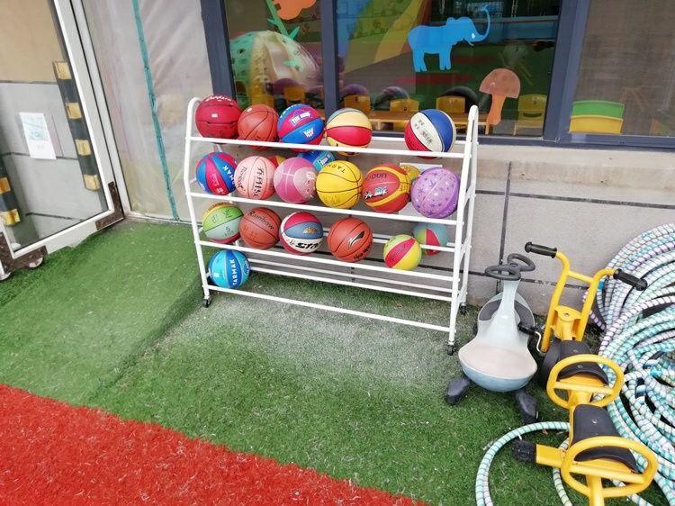 Estante de almacenamiento para pelotas de baloncesto, de jardín de infantes, de fútbol, de baloncesto, de voleibol y de gimnasio.