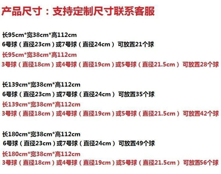 White -139cm can put 42 balls, White -95cm can put 28 balls, White -180cm can put 55 balls, Black -95cm can pu...