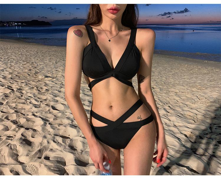Traje de baño para mujer Estilo Ins Bikini Europeo y Americano Diseño de Tres Puntos con Espalda Hermosa, Reunión para Busto Pequeño, Modelo Triángulo Traje de Baño para Examen de Arte con Espalda Descubierta