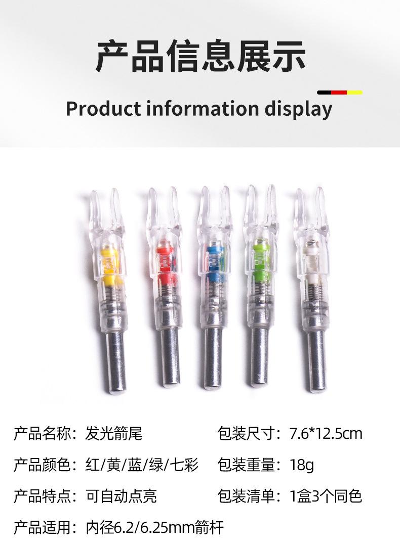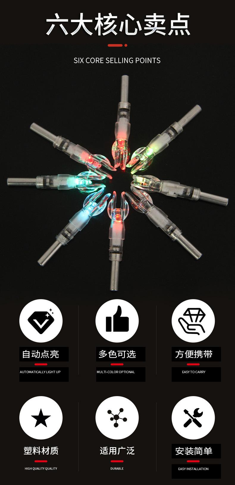 Compra Nueva cola de flecha luminosa LED Flecha de arco tiro con arco con interruptor diámetro interior 6.2mm tarjeta cuerda cabello luz cola de flecha suministro directo de fábrica al por mayor en Joom.pro