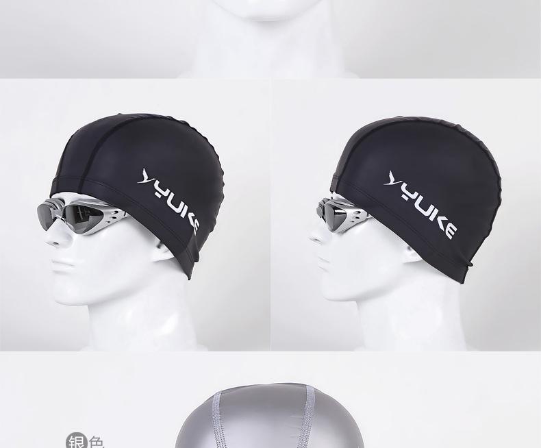 Yuke gorro de natación de PU para adulto con protección para los oídos gorro de natación para cabello largo para hombres y mujeres color sólido gorro de natación gorro de ducha venta al por mayor generación