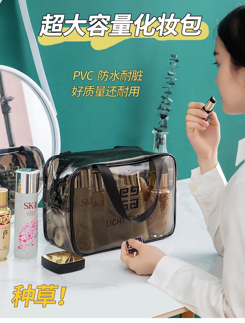 Bolsa de cosméticos de PVC transparente de gran capacidad, venta al por mayor, neceser portátil, impermeable, para cosméticos, de viaje