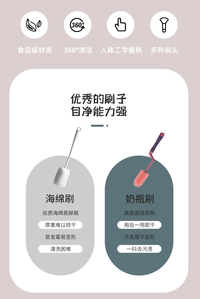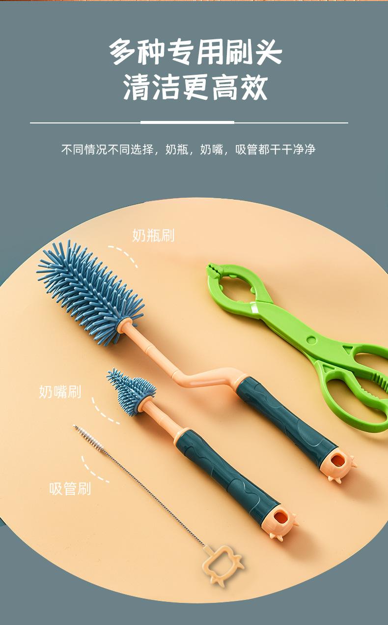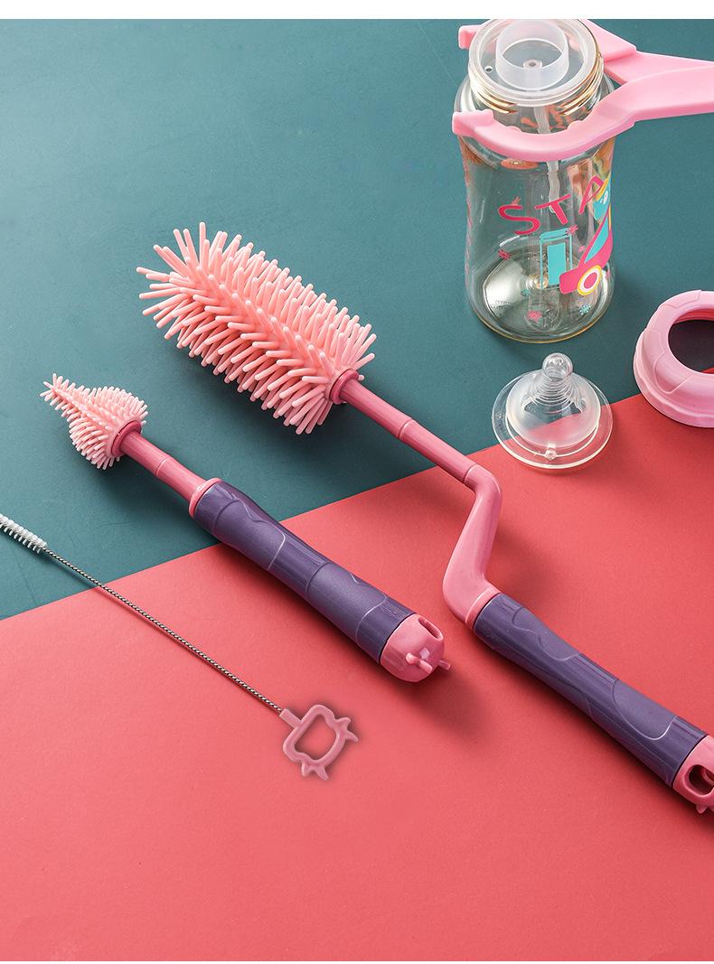 Cepillo de silicona para biberones, cepillo para tetinas, cepillo de succión, cepillo giratorio para biberones, cepillo de limpieza y enjuague, juego de cepillos de limpieza