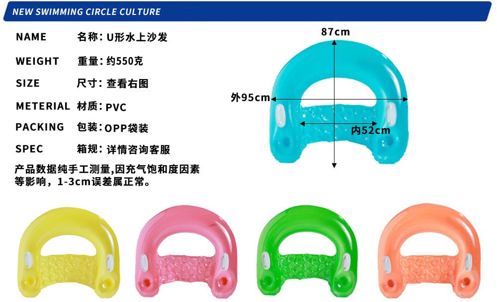 Flotador de agua en forma de U transfronterizo, sofá inflable engrosado, anillo de natación para adultos, respaldo reclinable con asa