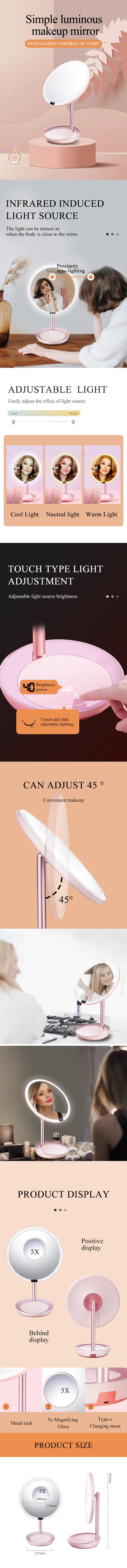 Nombre del producto: Espejo de maquillaje LED con sensor infrarrojo inteligente