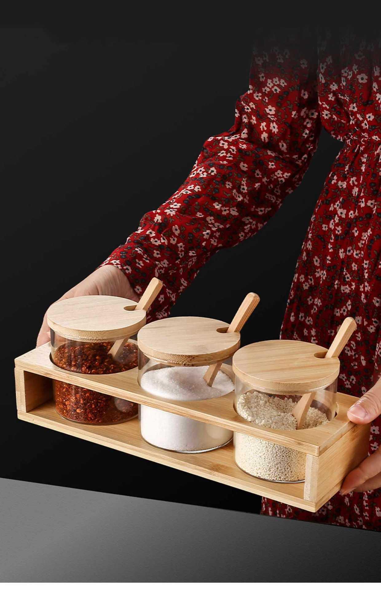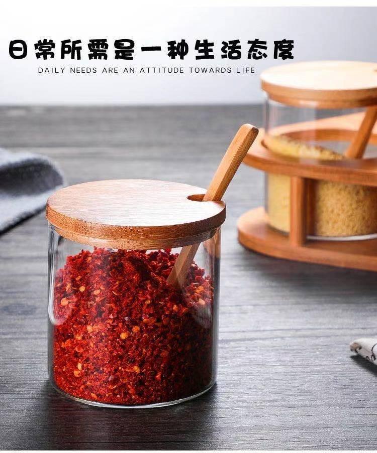 Tarro de Condimentos de Vidrio Borosilicatado Alto, Caja de Condimentos, Tarro de Almacenamiento de Condimentos de Cocina con Cuchara y Tapa, Botella de Condimentos Sellada