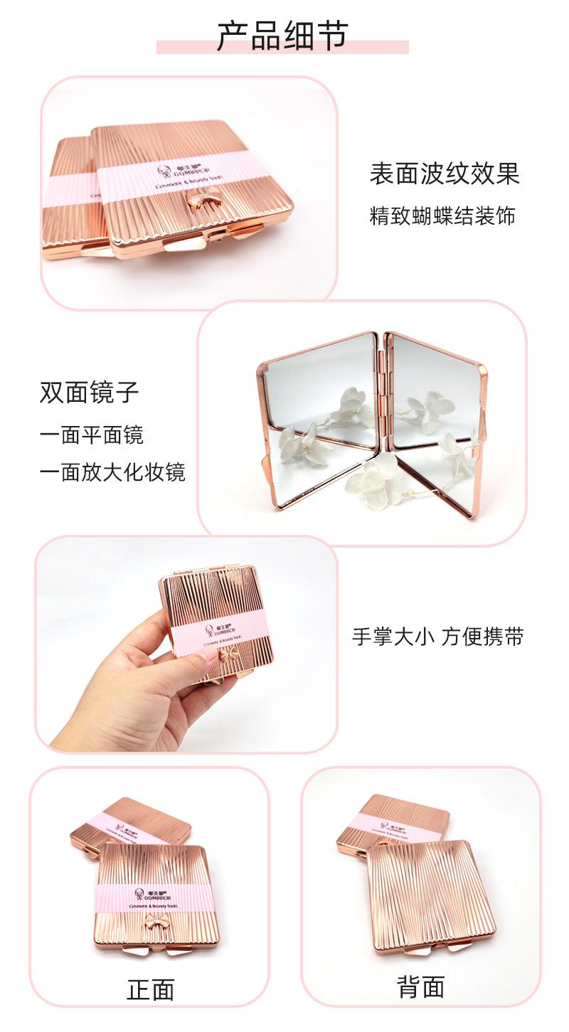 Espejo cosmético cuadrado plegable portátil de estilo europeo de doble cara, espejo de bolsillo para maquillaje de punto transfronterizo, espejo pequeño de metal para estudiantes