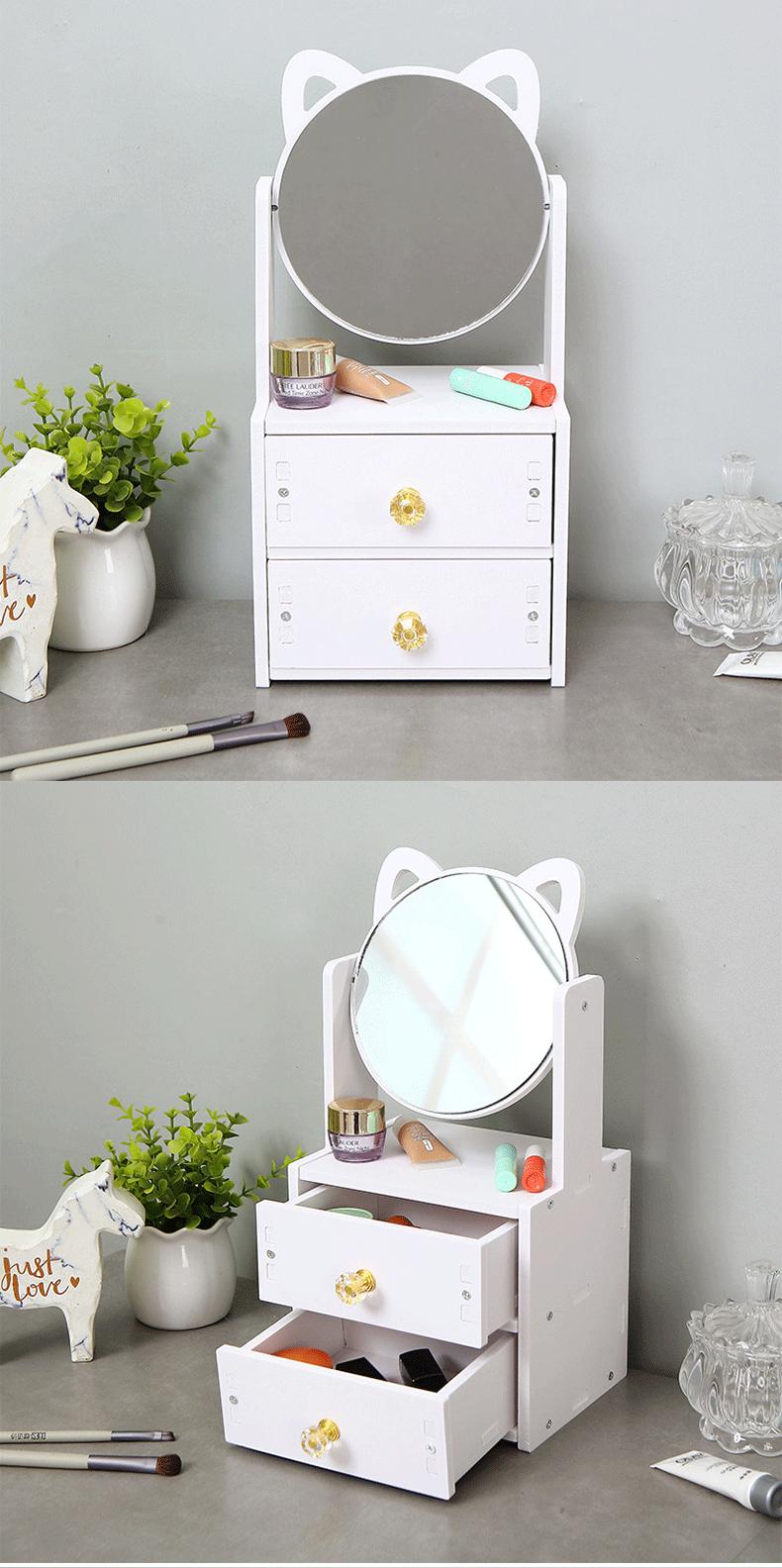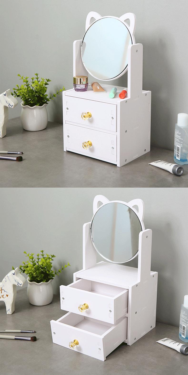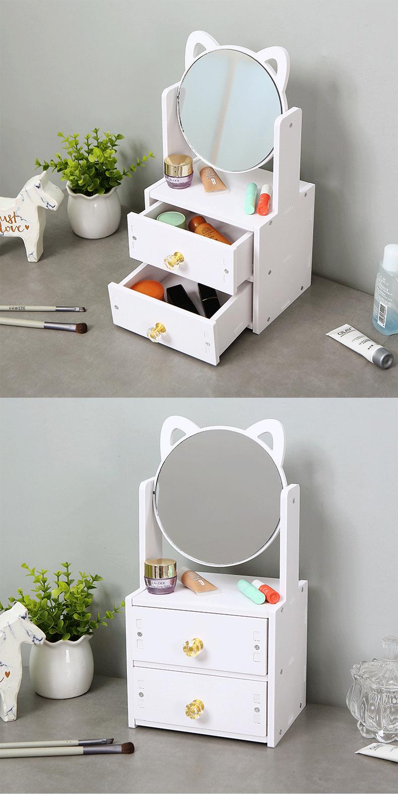 Caja de Almacenamiento de Cosméticos de Escritorio con Espejo, Tocador, Dormitorio a Prueba de Polvo, Caja de Maquillaje para Productos para el Cuidado de la Piel con Estante de Almacenamiento con Cajones