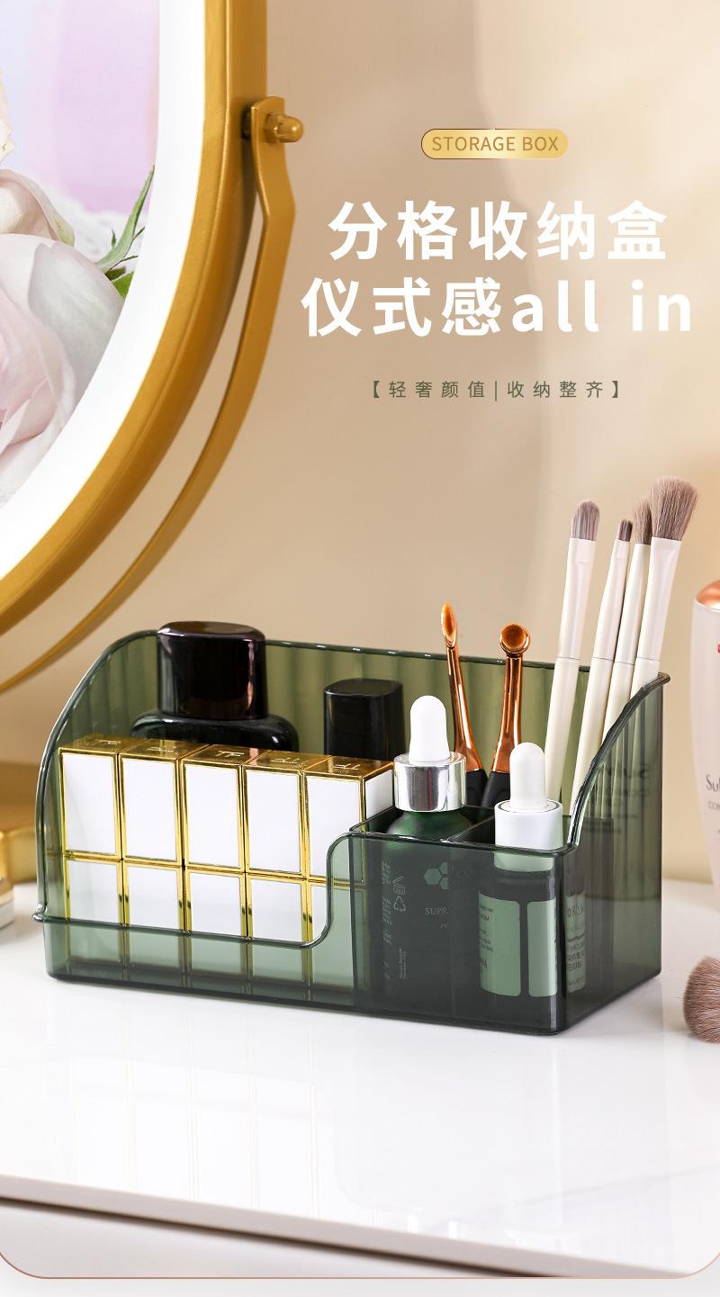 Caja de almacenamiento transparente, ligera y de lujo para cosméticos, lápiz labial y cuidado de la piel, para tocador de escritorio, para el hogar, con compartimentos para almacenamiento.