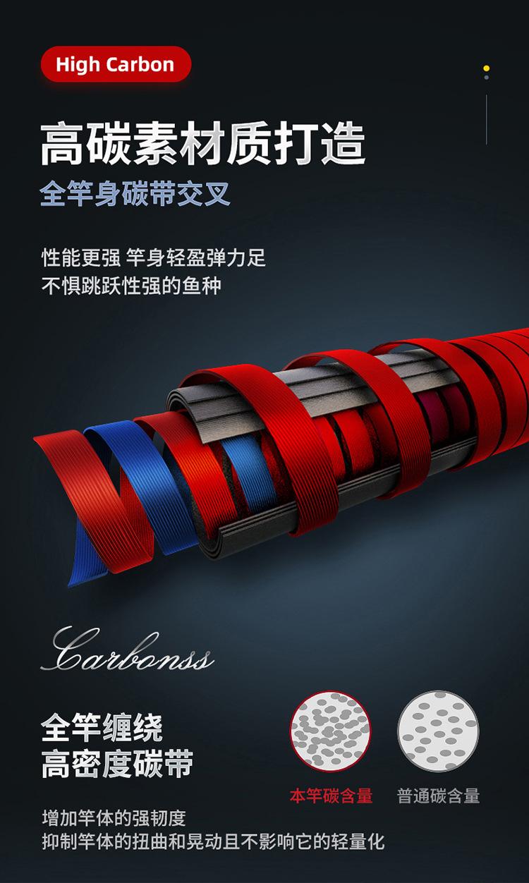 Caña de pescar de carbono Luya, color negro, 1,8-2,7 m, larga distancia, ligeramente ajustada, con tapón, equipo de pesca resistente.