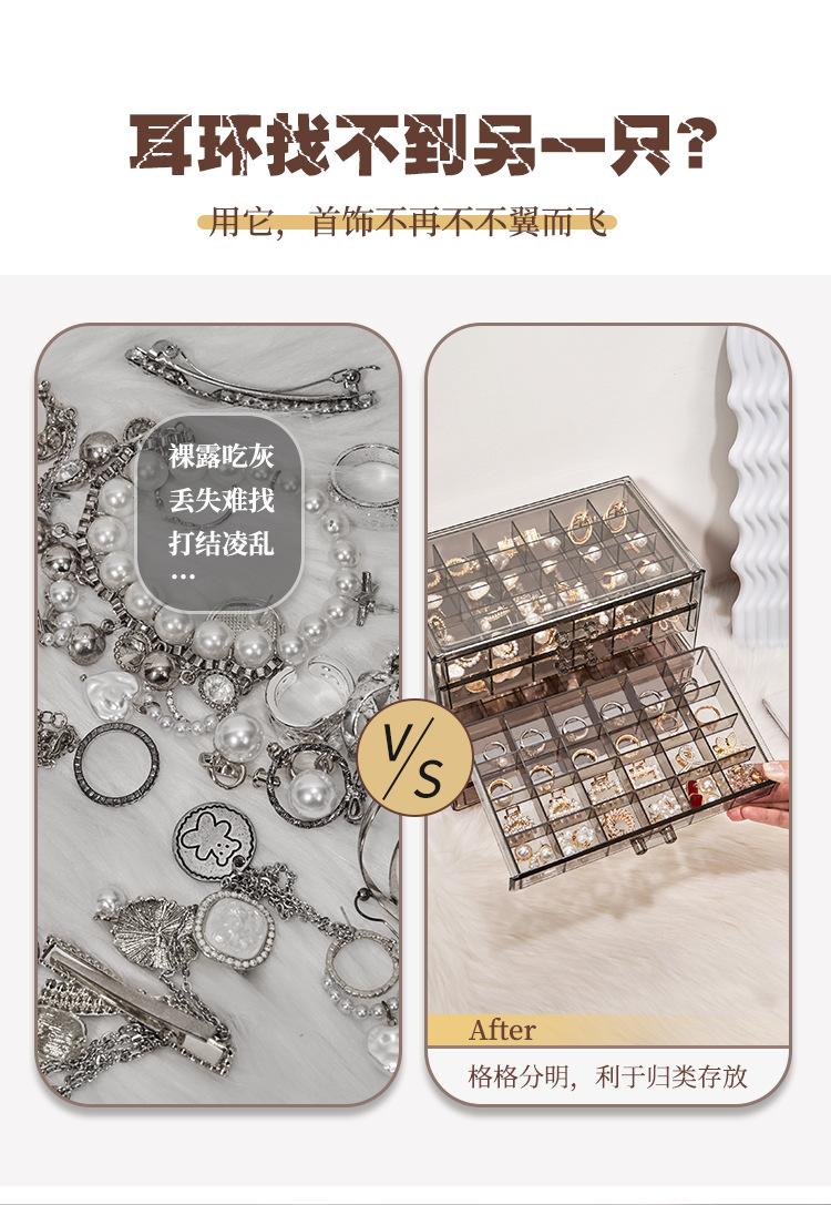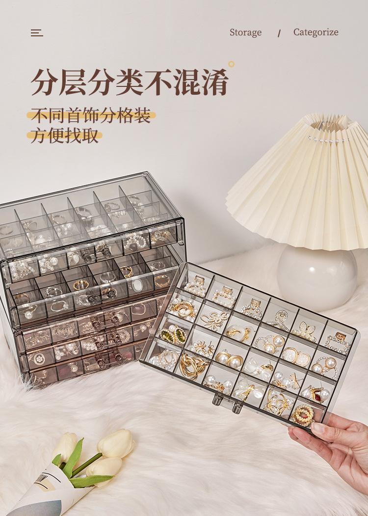 2023 Nuevo en stock caja de almacenamiento de joyería transparente multicapa de gran capacidad anillos aretes collares almacenamiento tocador