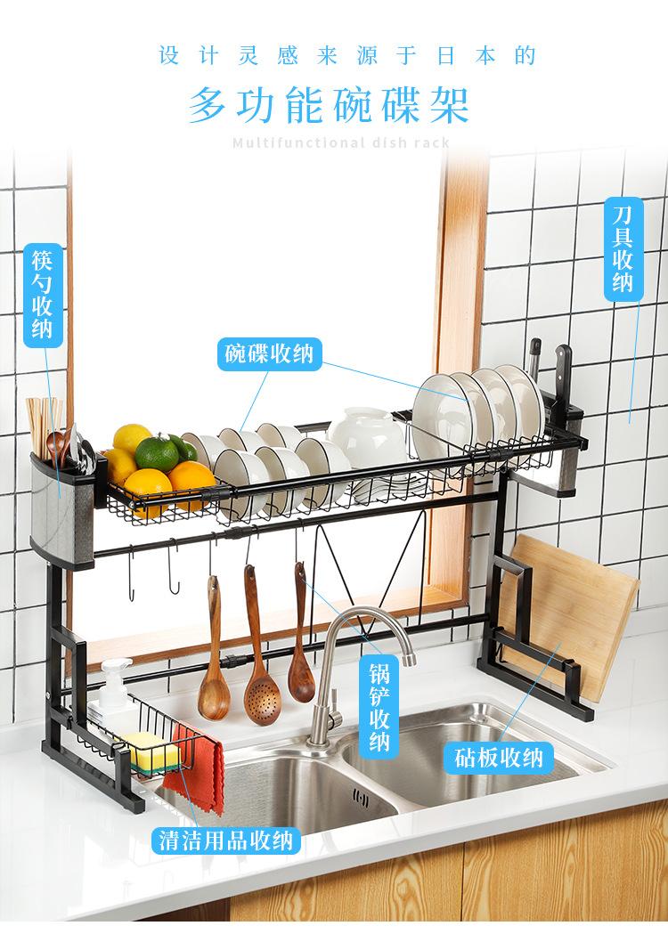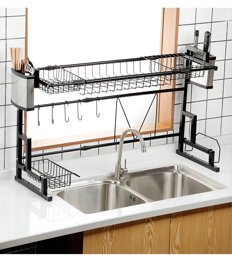 Estante de almacenamiento de cocina extensible transfronterizo, escurridor de acero inoxidable, escurridor sobre el fregadero