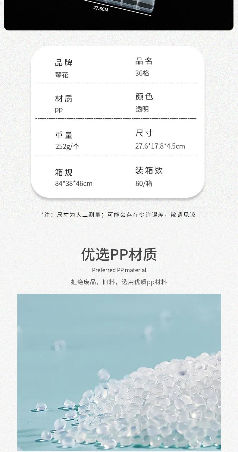 Caja de almacenamiento de plástico transparente extraíble de 36 rejillas para joyas, cosméticos, pesca, herramientas, tornillos, acabado de escritorio
