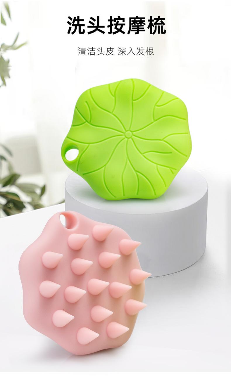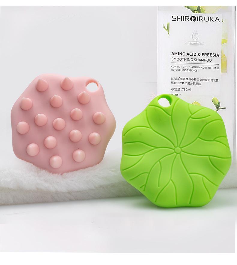Cepillo de champú de hoja de loto, cepillo de champú de silicona, cepillo de champú para limpieza del cuero cabelludo, peine de champú para masaje de meridianos, cepillo de champú de silicona