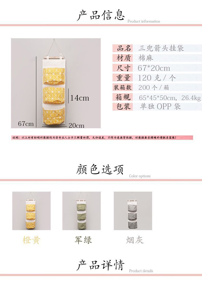 Bolsa Colgante de Almacenamiento de Algodón y Lino para el Hogar, Bolsa de Almacenamiento de Tres Bolsillos Montada en la Pared con Rama de Árbol para Colgar Detrás de la Puerta, Almacenamiento Tridimensional Montado en la Pared
