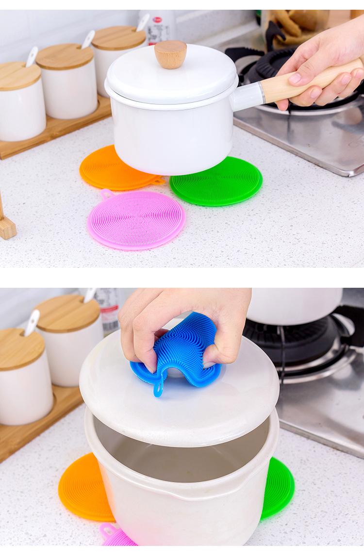 Cepillo Lavaplatos de Silicona Multifuncional Antiadherente para Aceite Cocina Limpieza de Platos Paño para Fregar Cepillo Lavador de Ollas Platos Aislamiento de Calor Tapete de Silicona