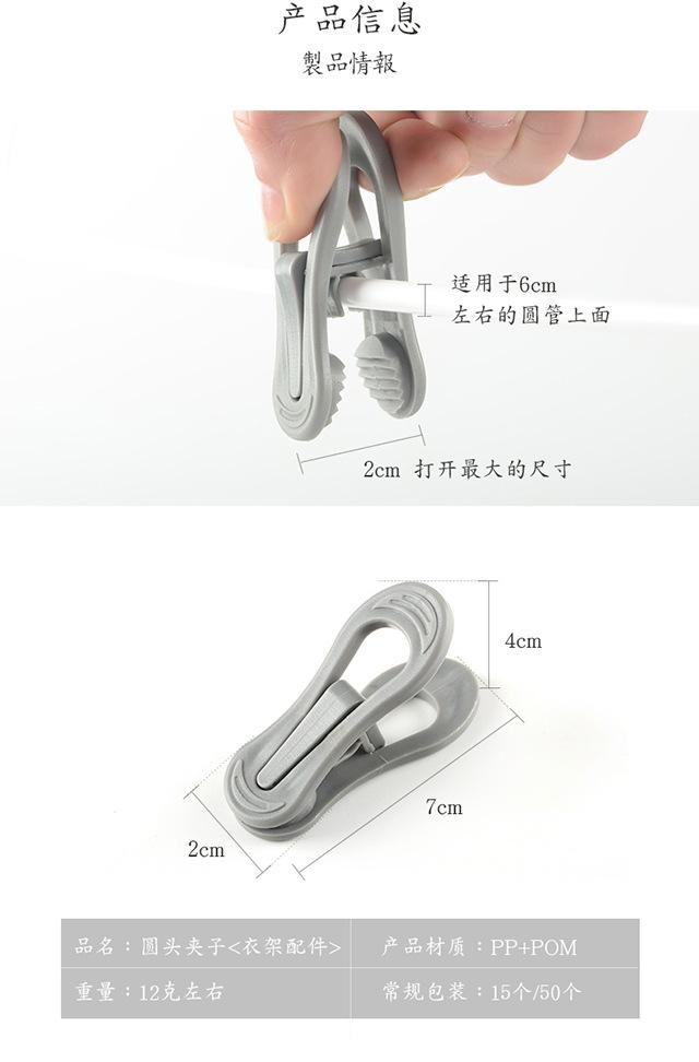 Clip de plástico PP de cabeza redonda multifuncional para colgar tubos redondos accesorios a prueba de viento fijo para secar ropa clip blanco negro