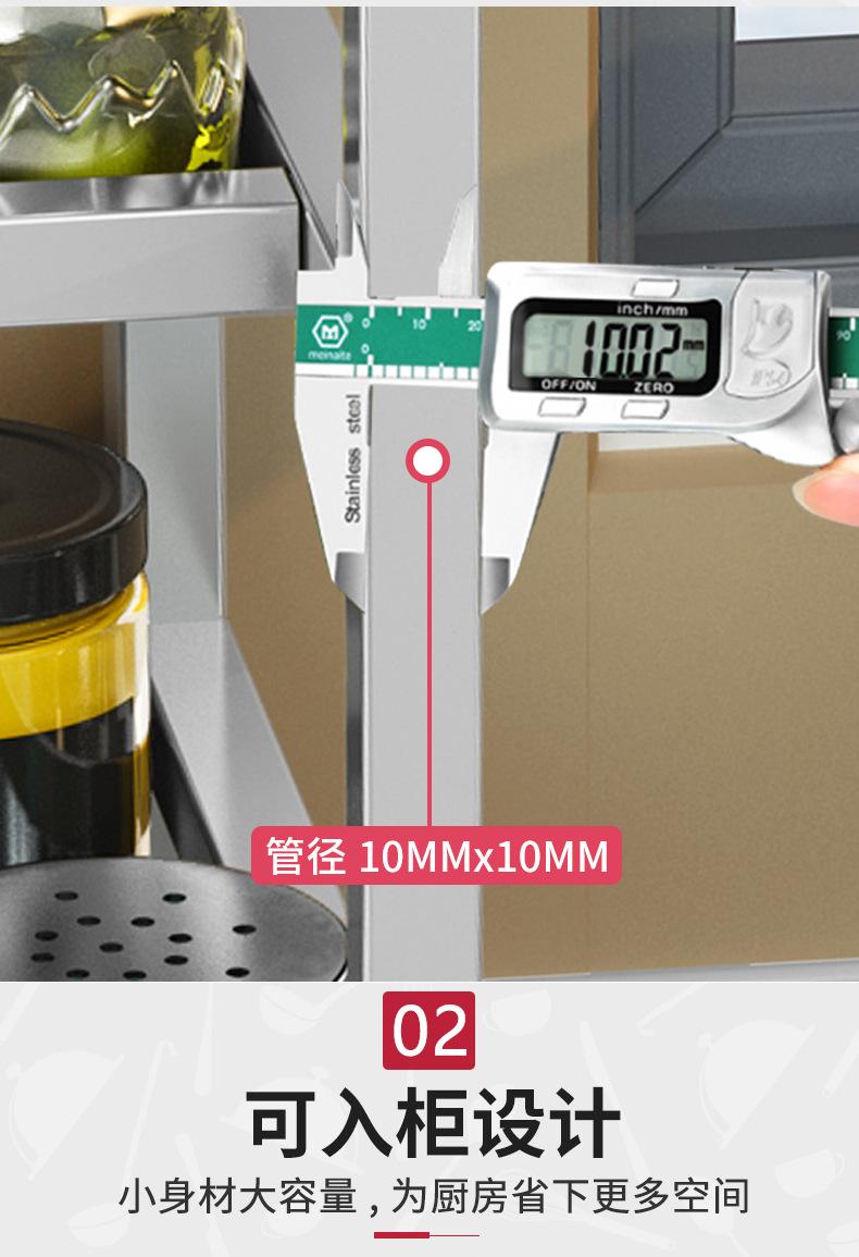 1. Características del producto: Hecho de acero inoxidable, duradero, estructura razonable, mano de obra fina, es un buen ayudante para aprovechar al máximo el espacio de la cocina.