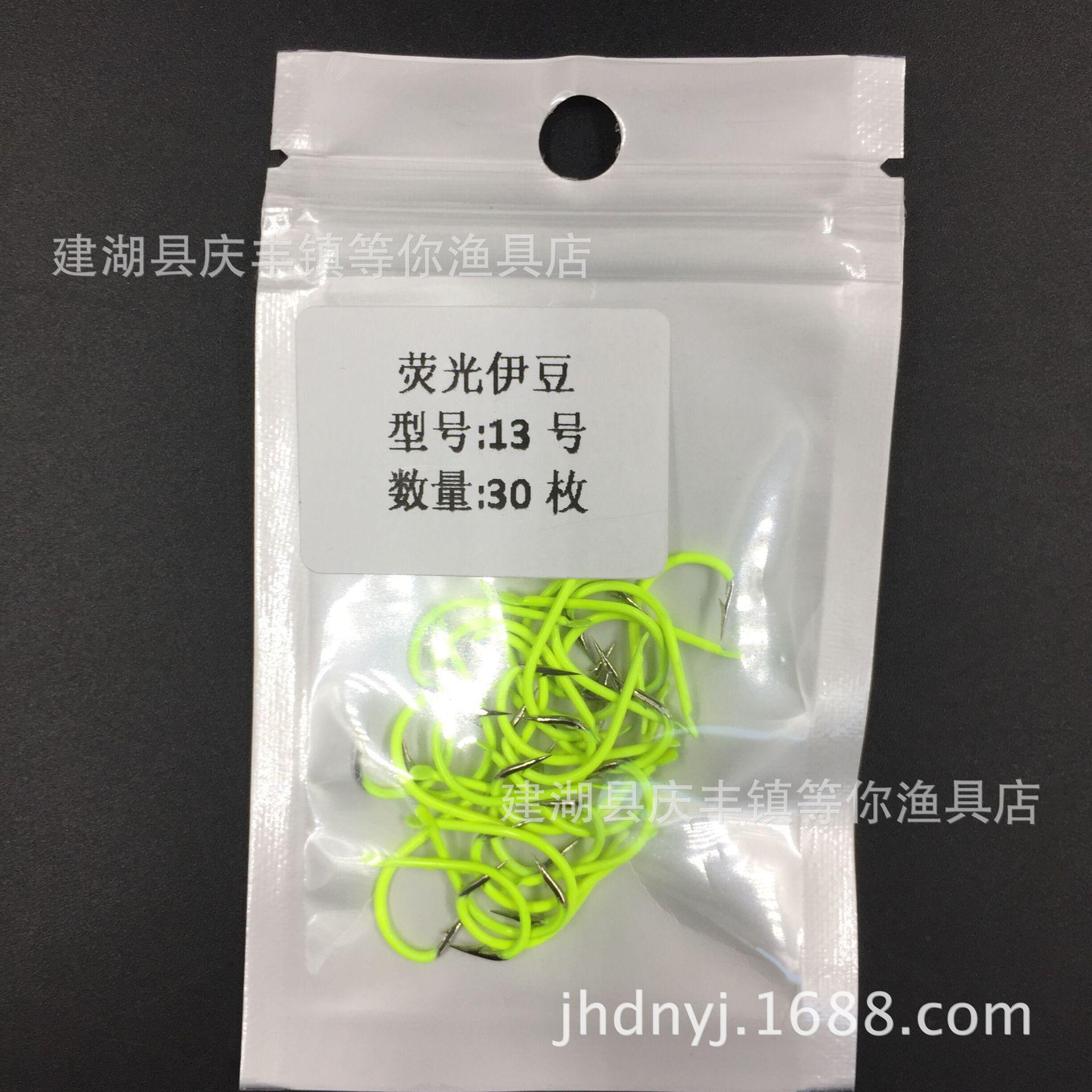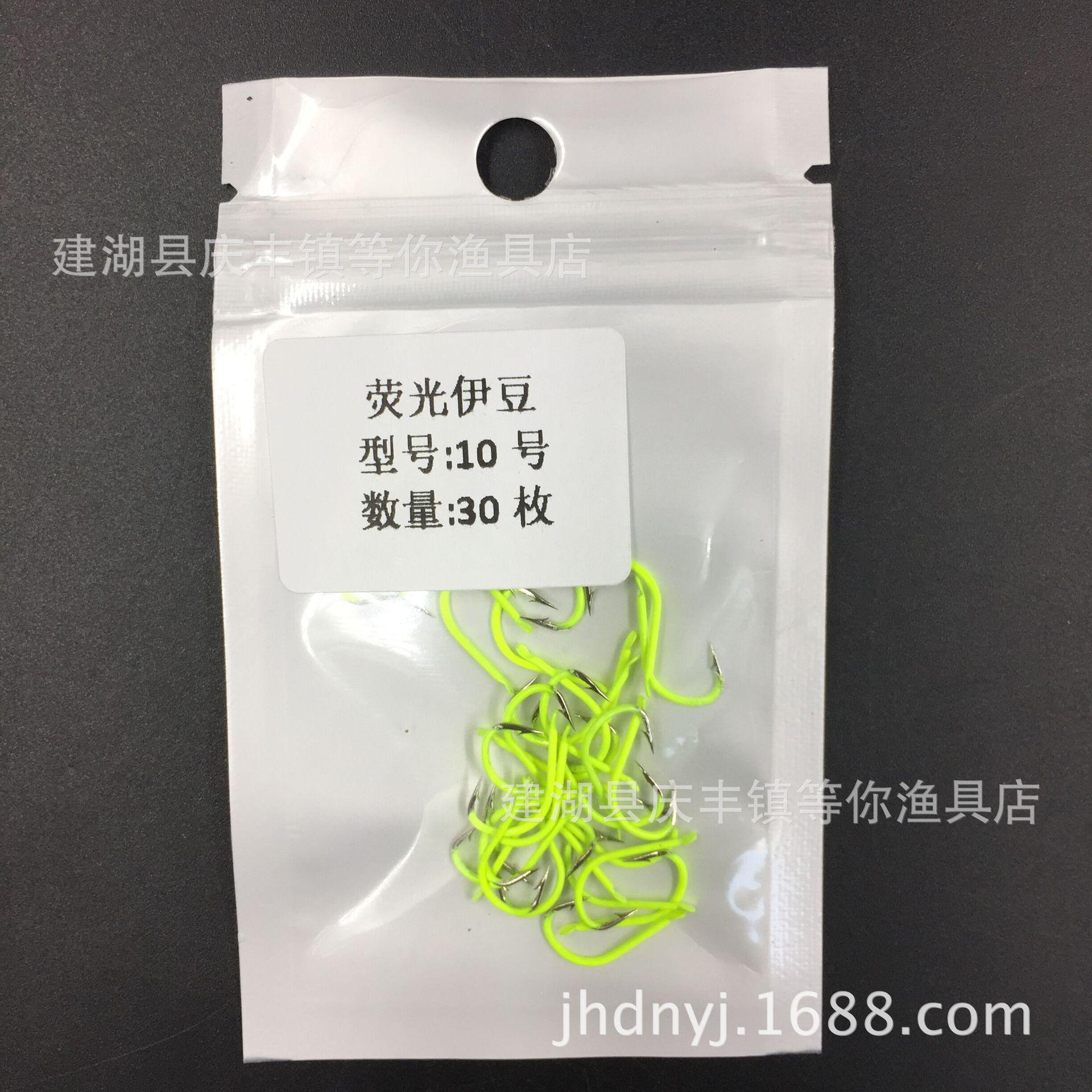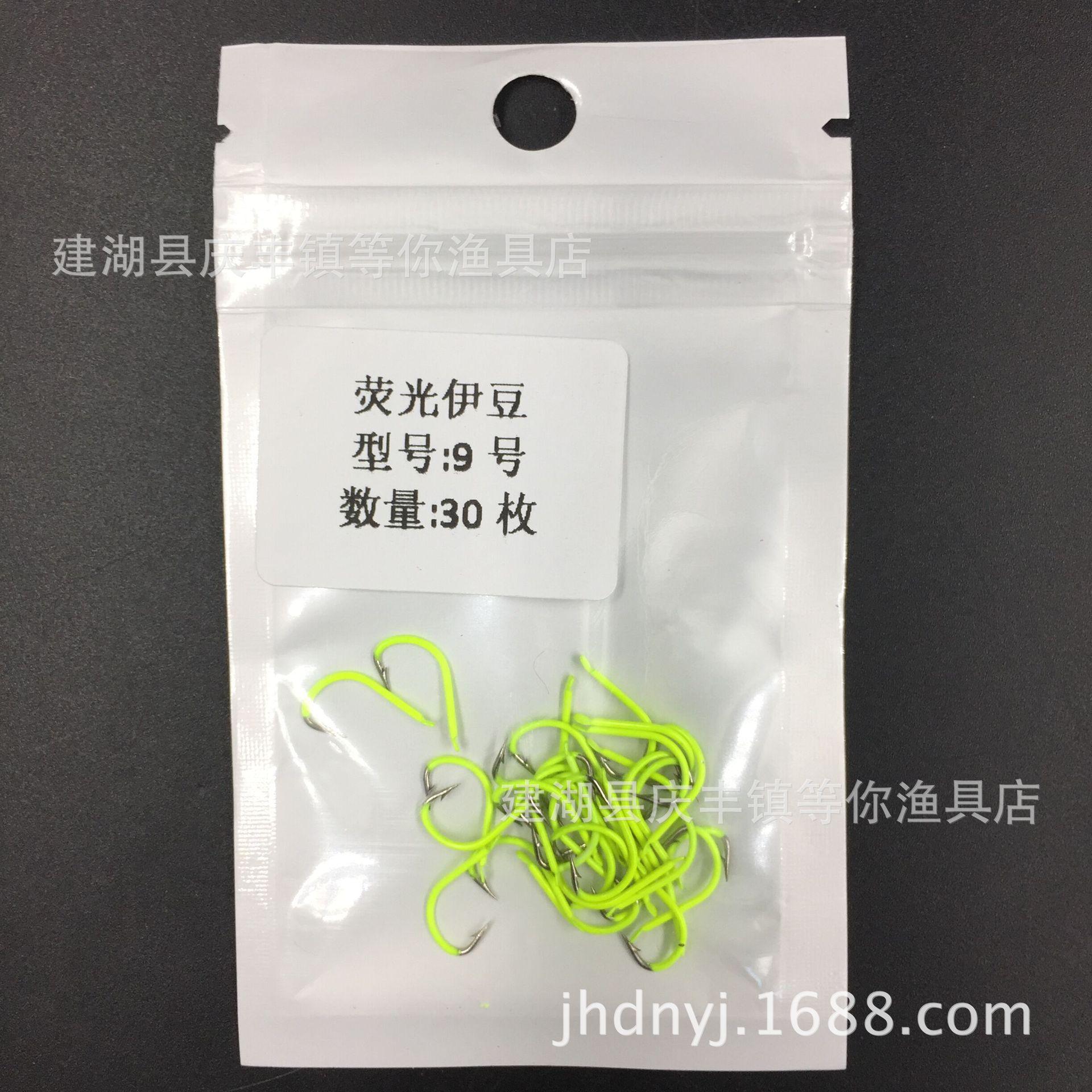 Bolsa de anzuelos de púas Izu amarillo fluorescente a granel, anzuelo de línea de pesca, equipo de pesca, 30 piezas