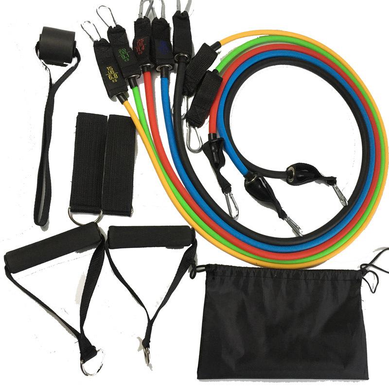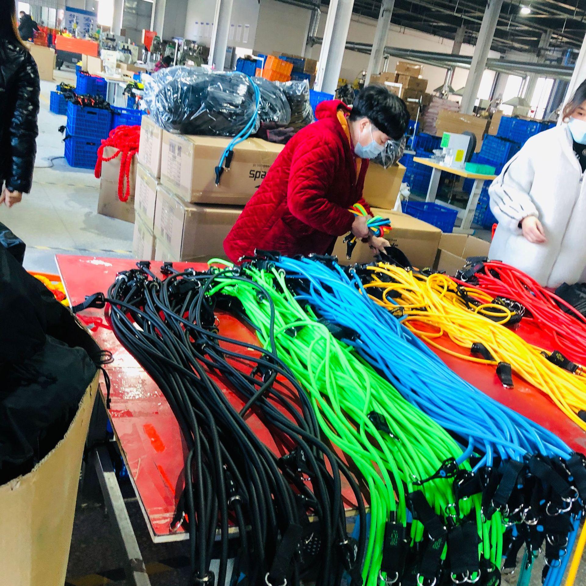 Producción y venta al por mayor de juego de 11 piezas de cuerda tensora, banda de resistencia TPE, cuerda elástica, juego de entrenamiento de tensión