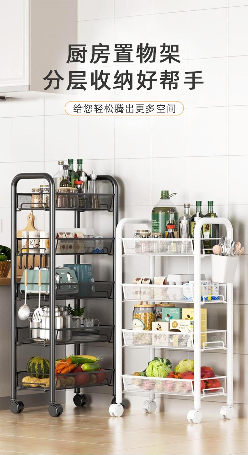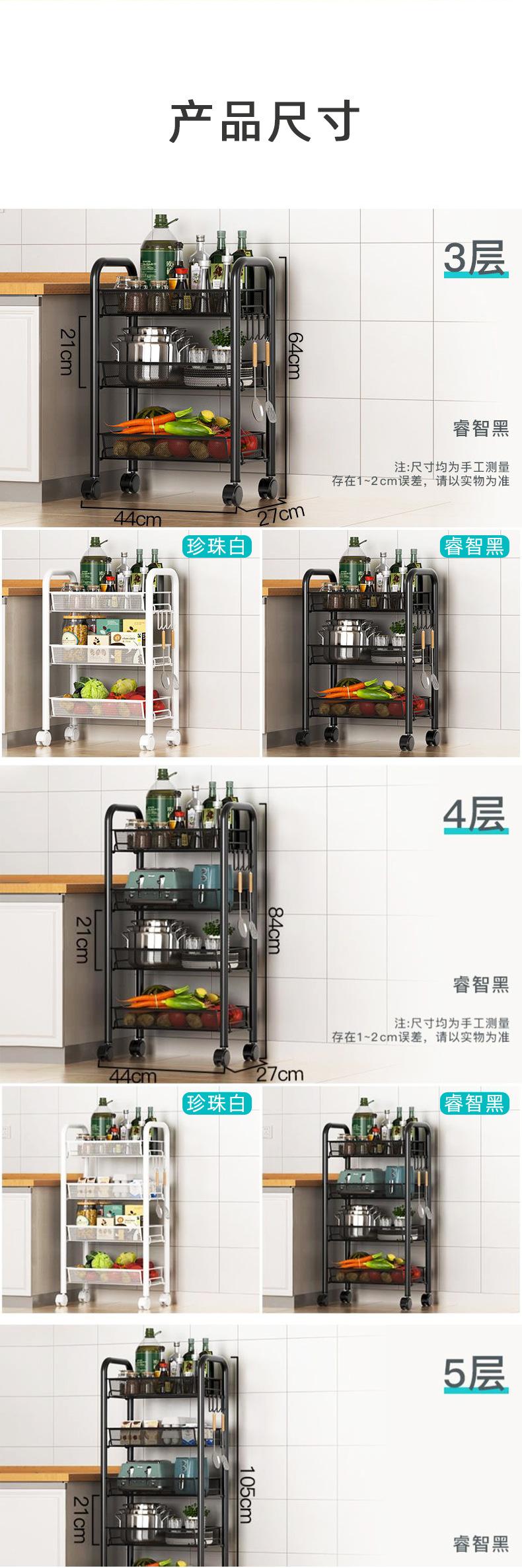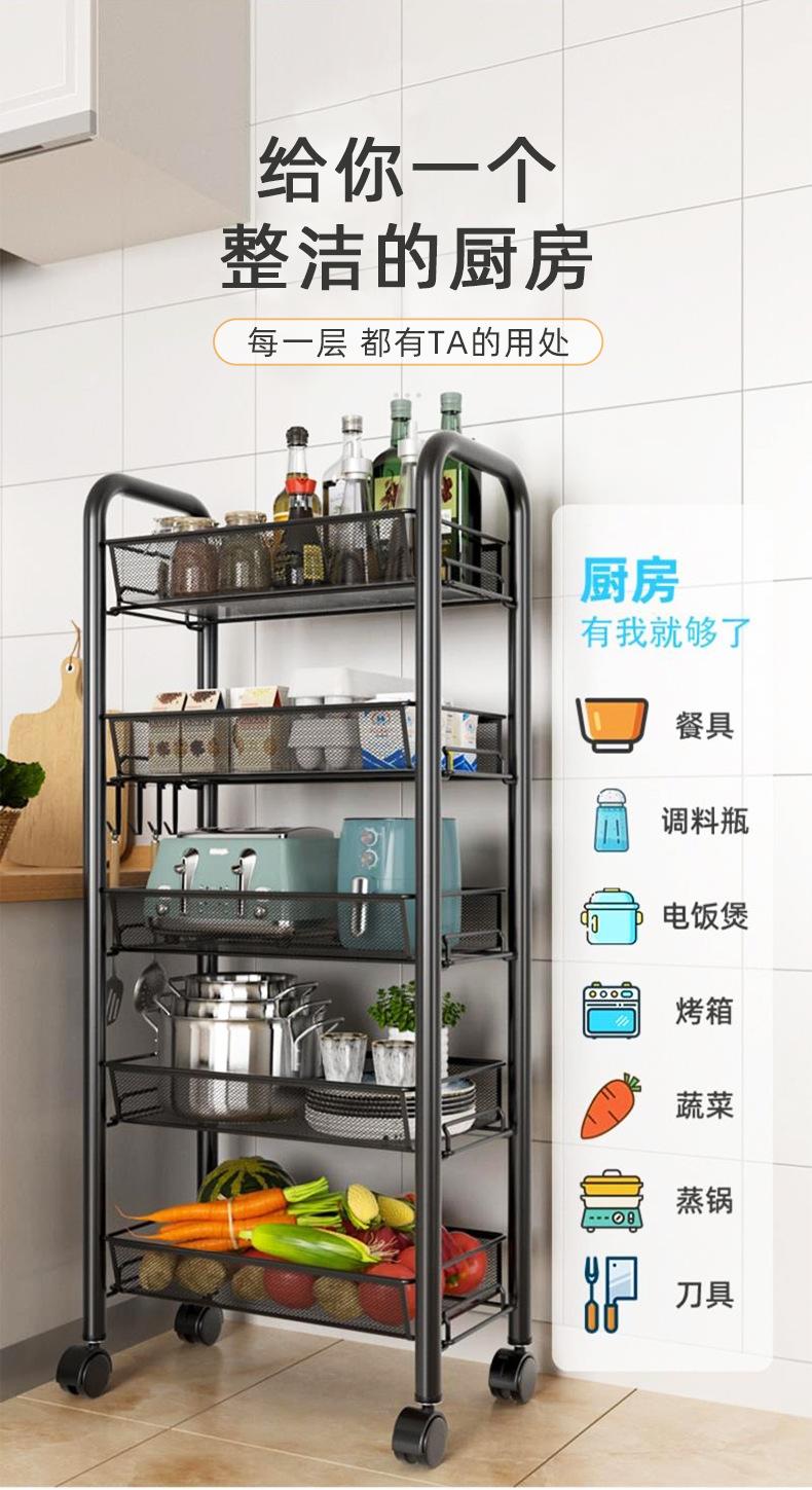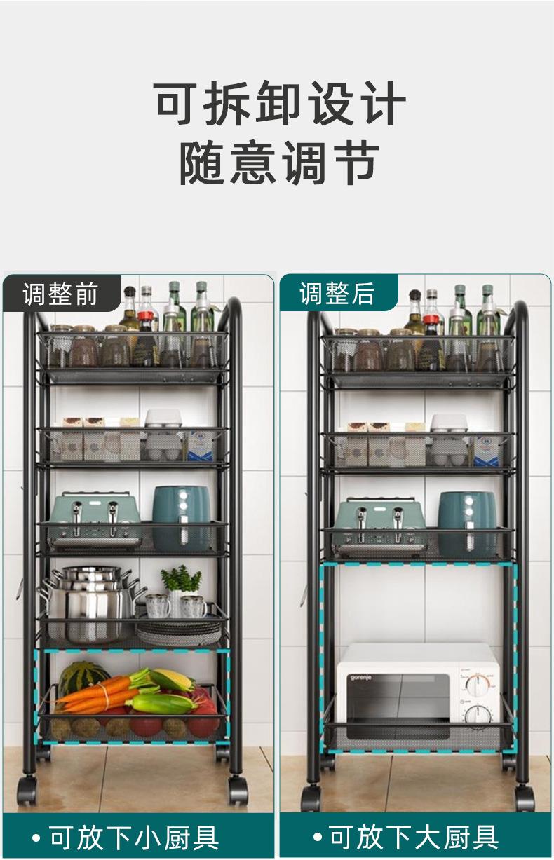 Estante de Almacenamiento de Acero al Carbono para Cocina de Pie Multicapa para Hogar Carrito Móvil Estante de Almacenamiento Cesta para Verduras Suministros de Almacenamiento