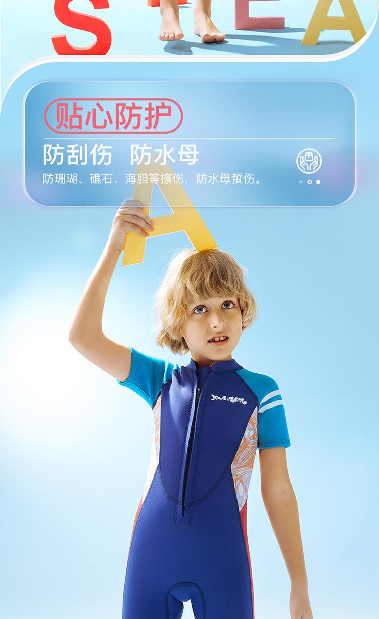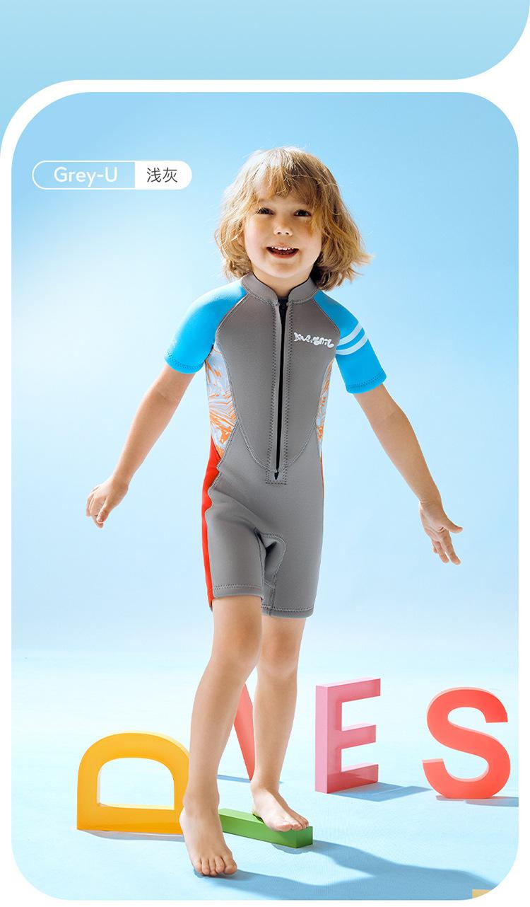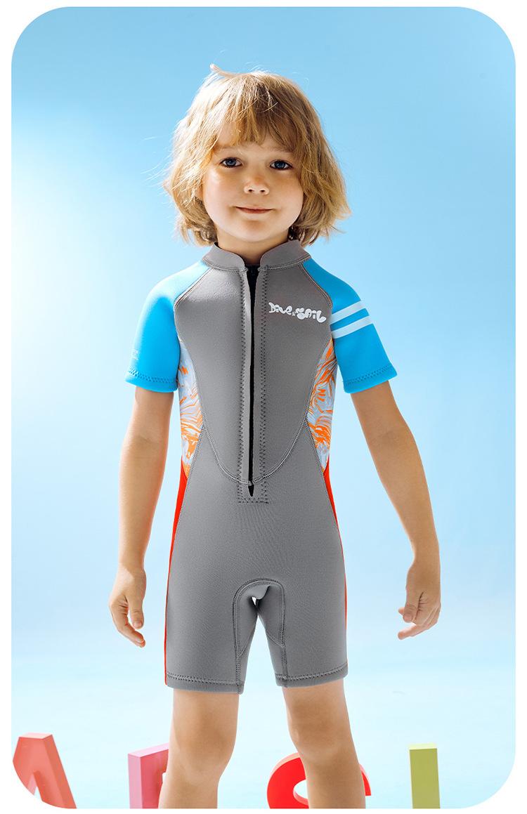 Traje de buceo para niños de 2,5 mm, cálido, de una pieza, de manga corta, para nadar, hacer surf y hacer esnórquel.