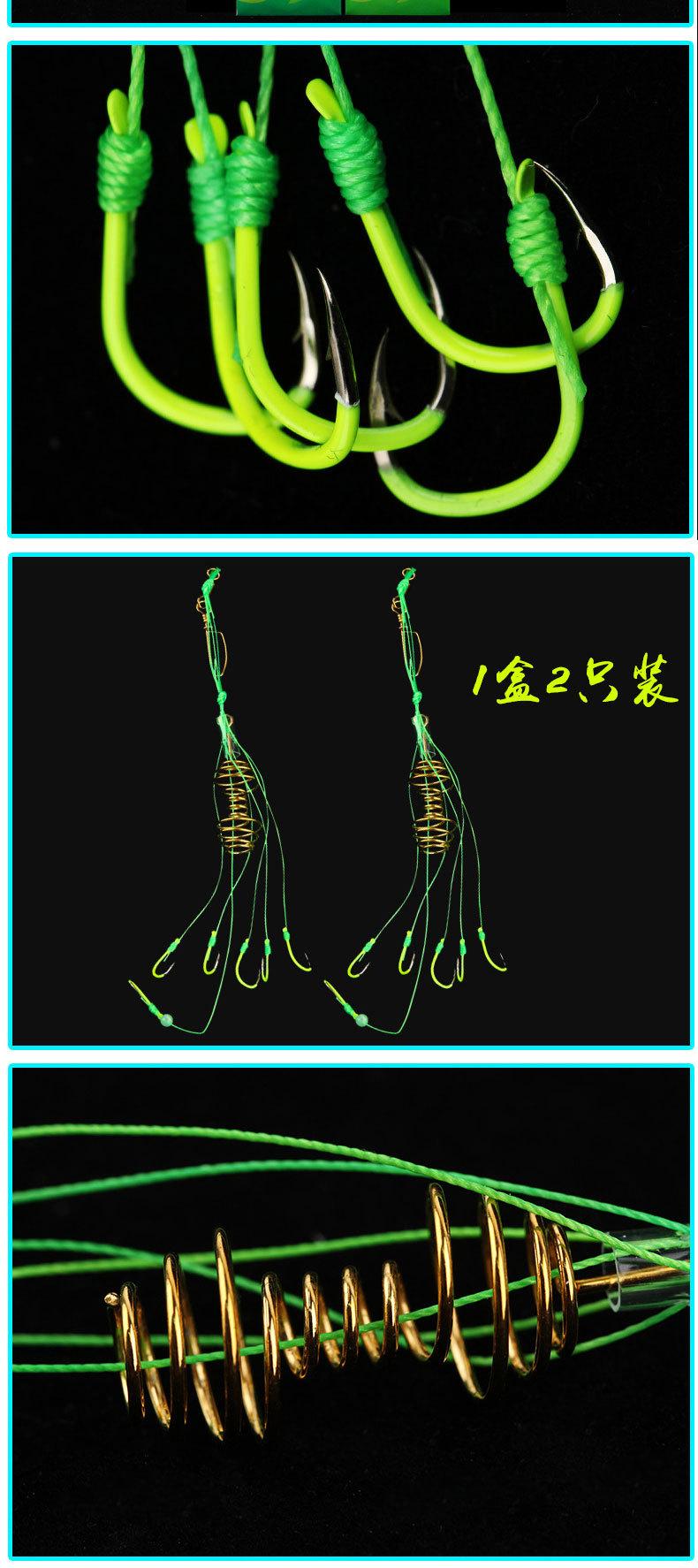 Los anzuelos bomba, también conocidos como anzuelos explosivos, anzuelos de grupo, anzuelos de grupo, son comunes en el tipo madre e hijo, los anzuelos de torta de frijoles y los anzuelos voladores. Los anzuelos bomba suelen agruparse en 6 piezas, generalmente hechas de hilo trenzado de nailon como sublínea. Se utilizan principalmente para la pesca de fondo con caña de lance y anzuelo hundido para capturar peces más grandes. Es un anzuelo efectivo. Es muy popular entre los aficionados a la pesca en aguas naturales como embalses y lagos con amplias extensiones y aguas profundas.
